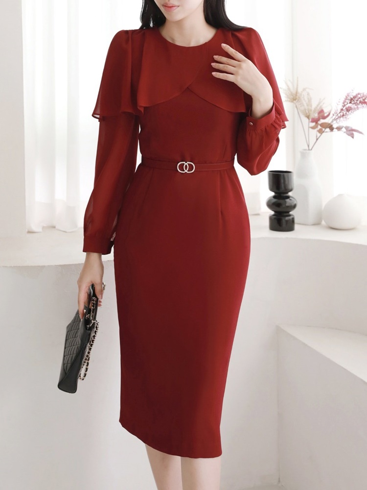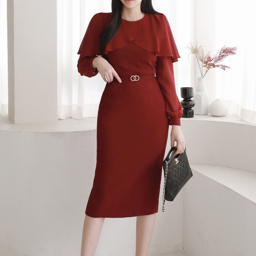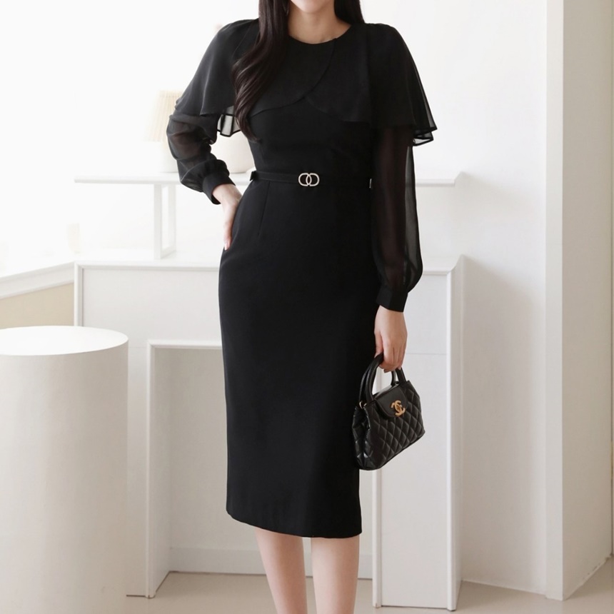 여성스러운 벨티드 정장원피스 하객룩