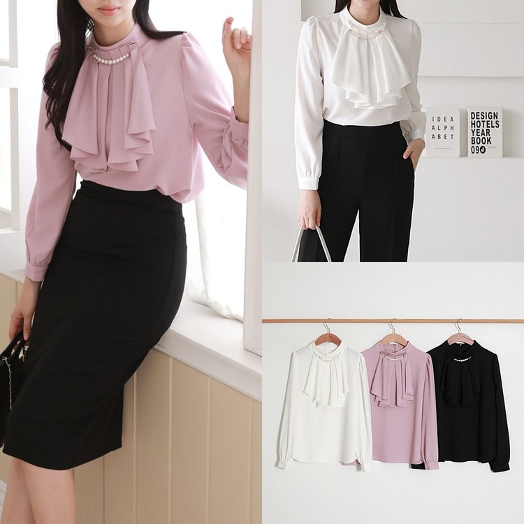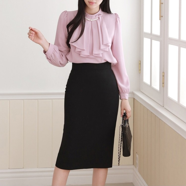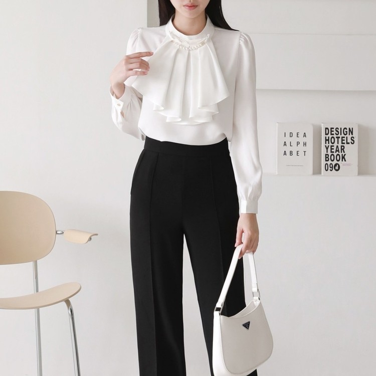 쉬폰 블라우스 고급스러운 브라우스 하객룩