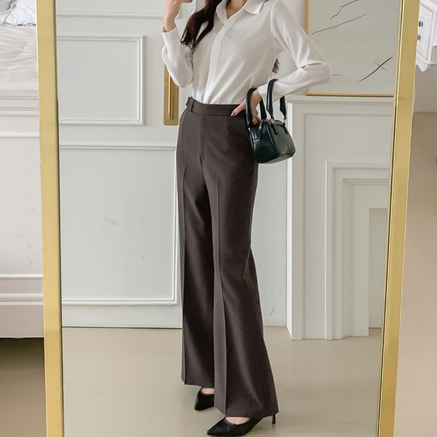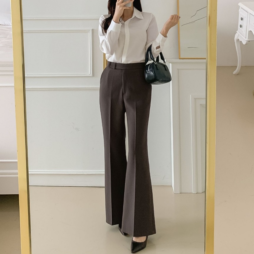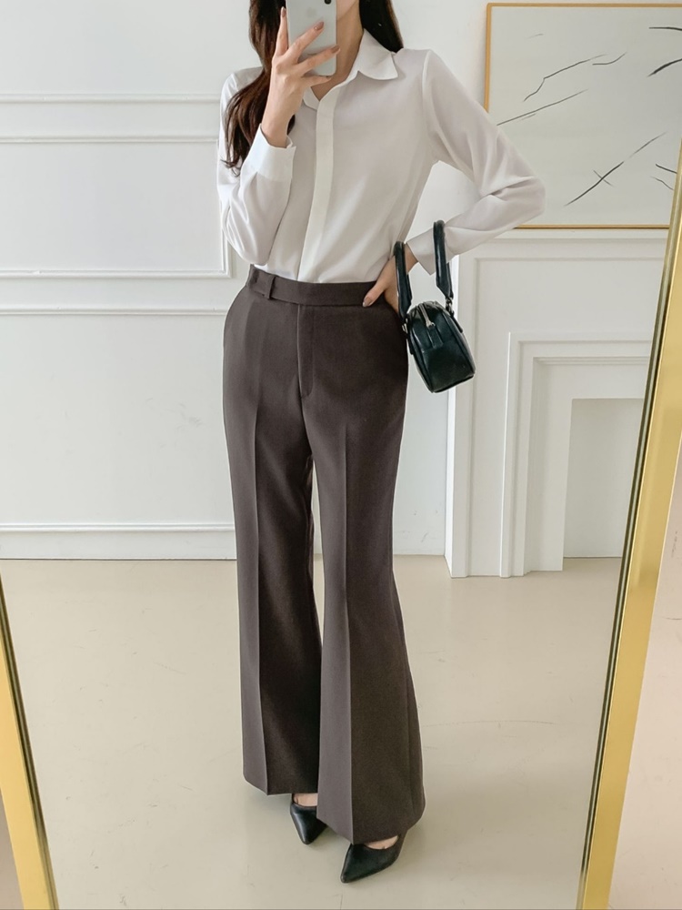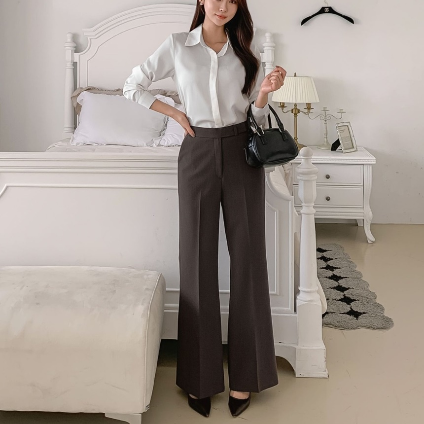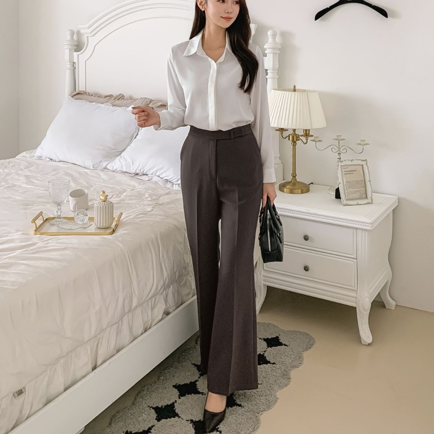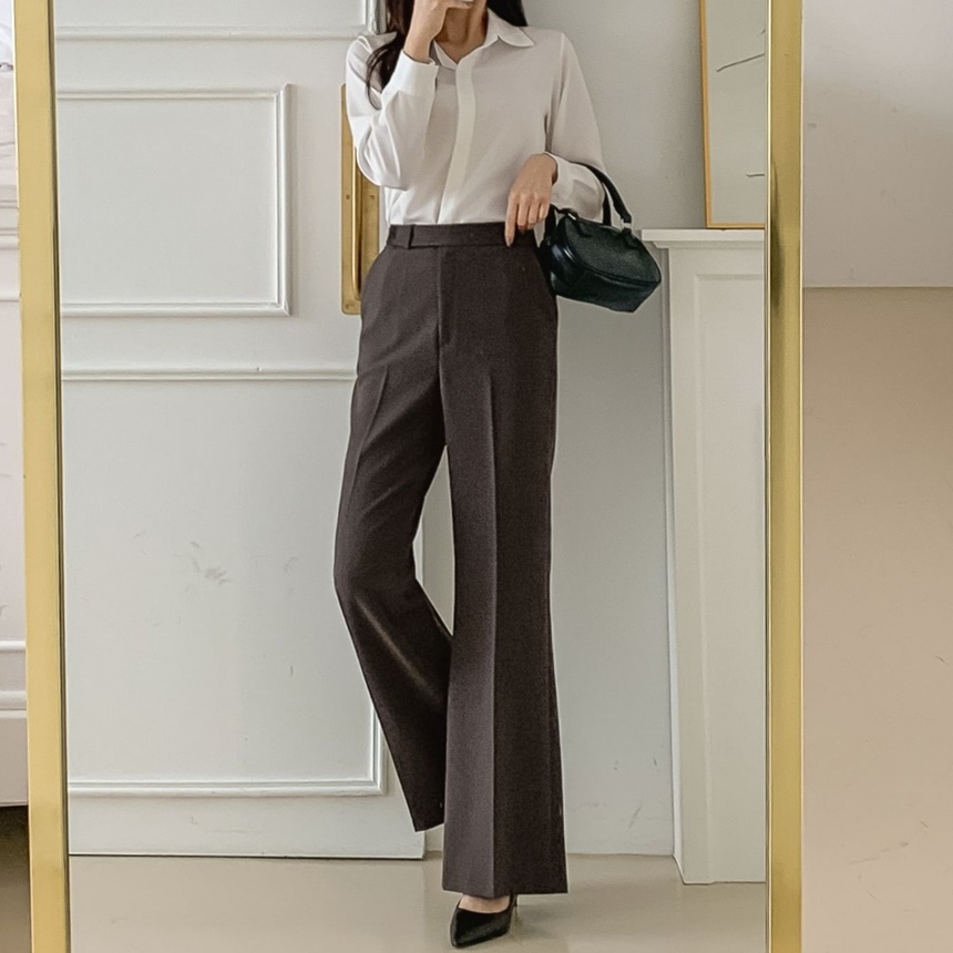 히든버튼 부츠컷 하이웨스트 슬랙스 팬츠