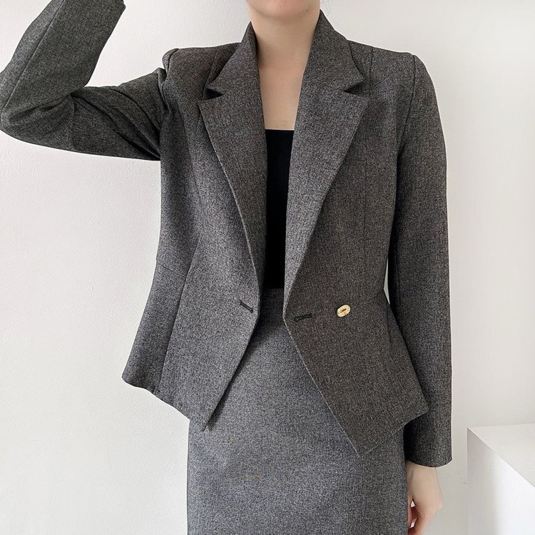 페플럼 자켓 스판 스커트 투피스 셋업수트