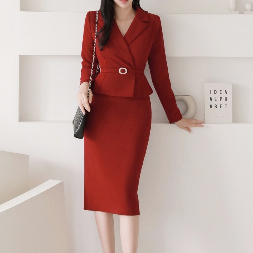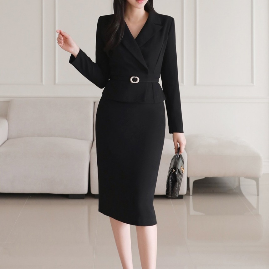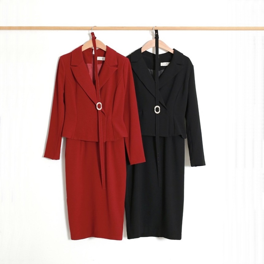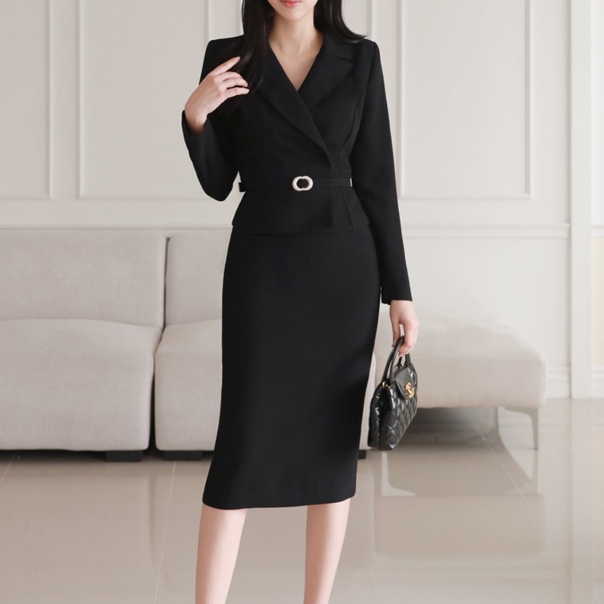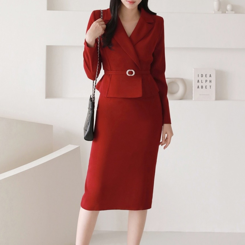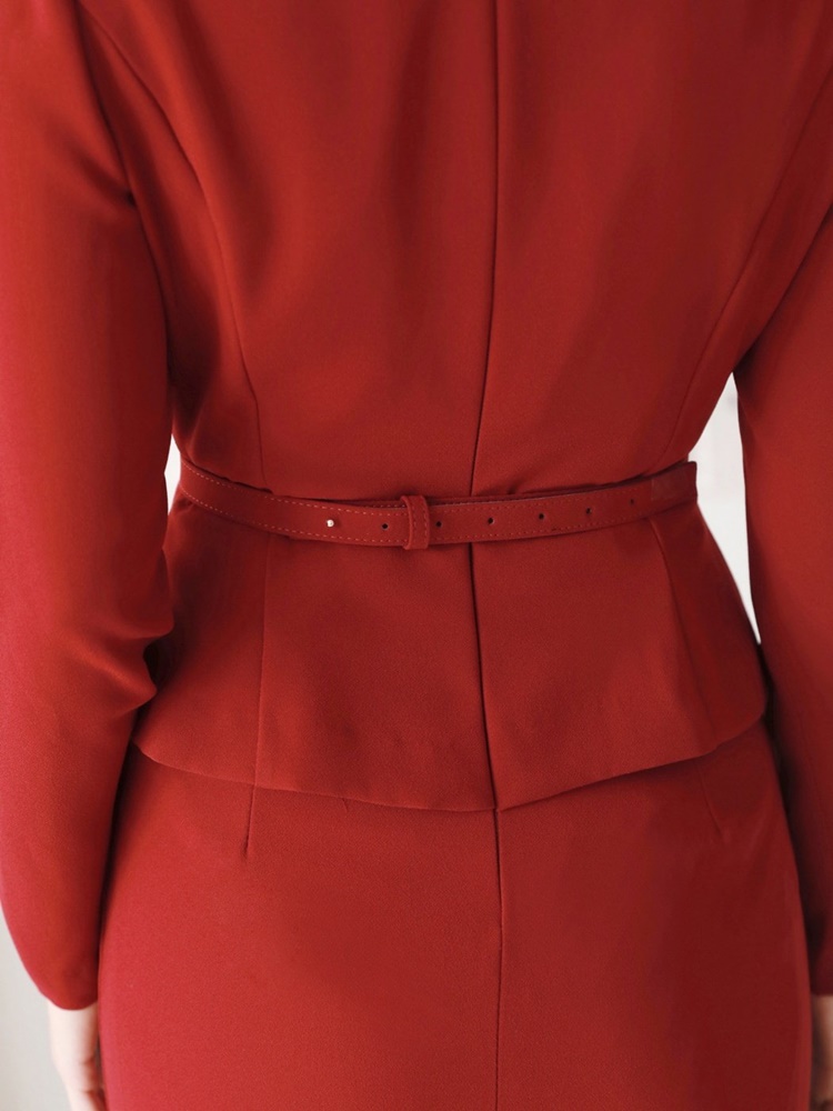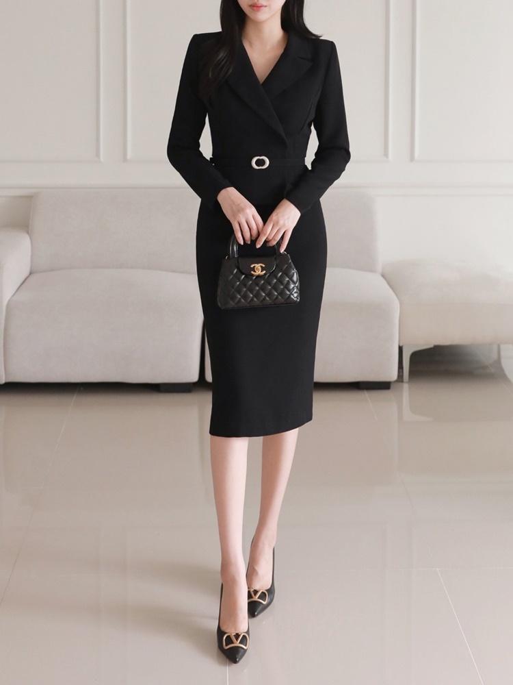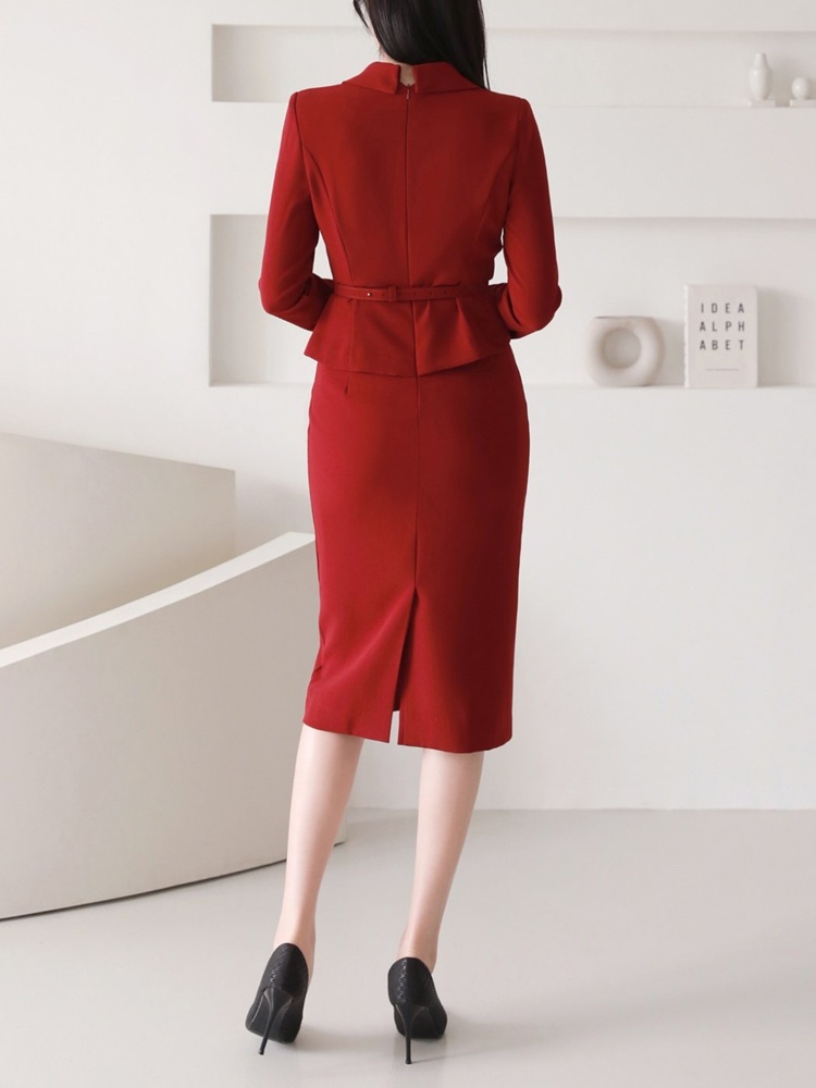 벨티드 테일러드 카라 페플럼 H라인 원피스