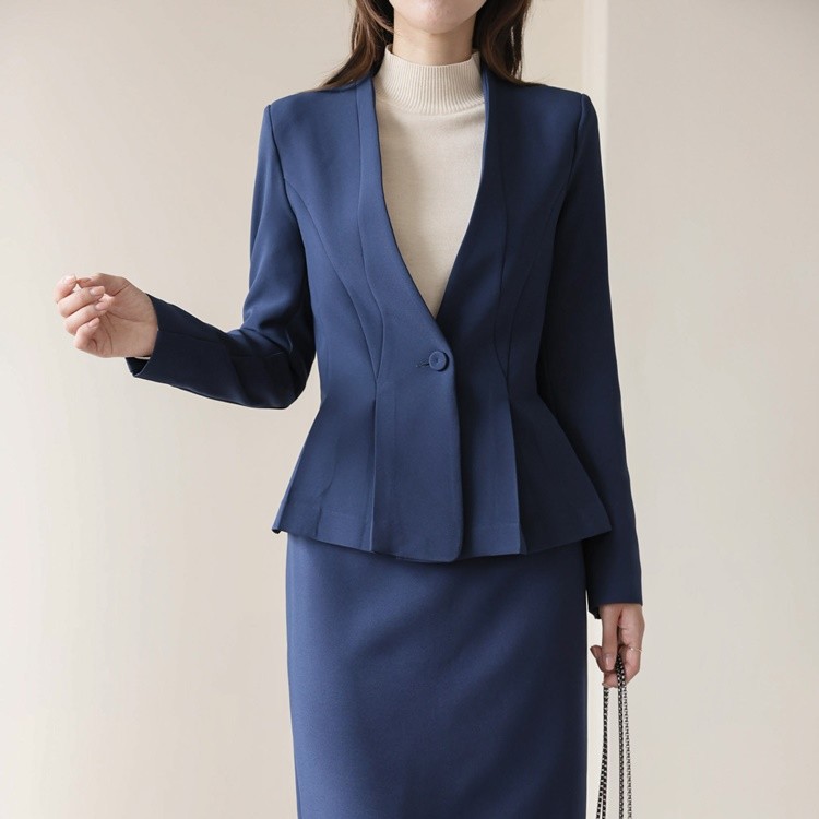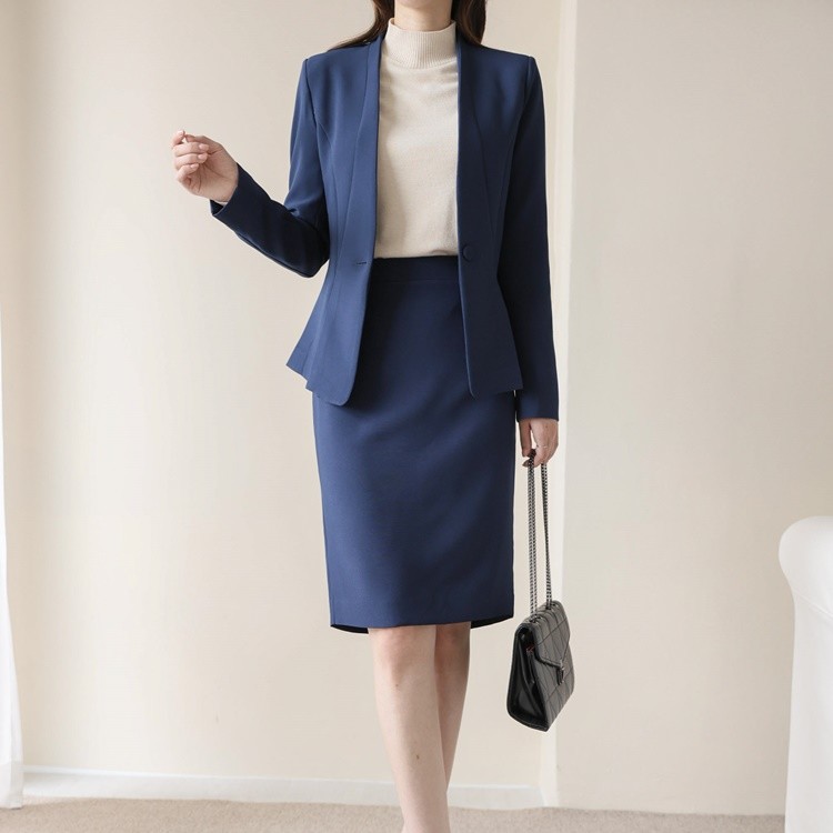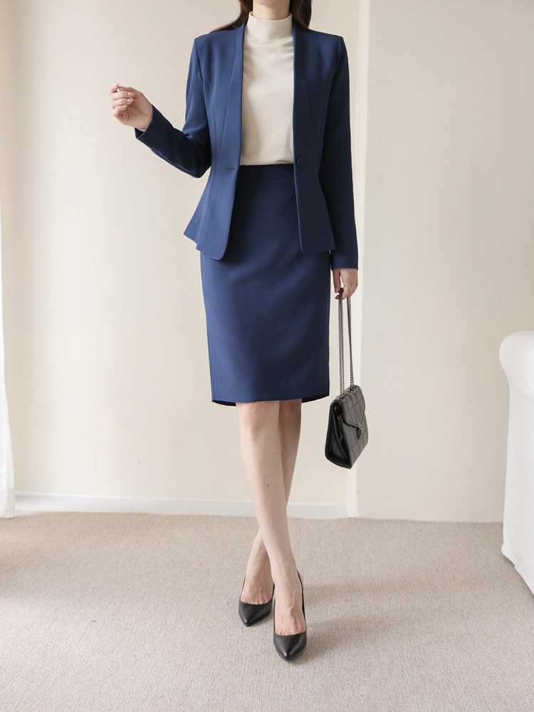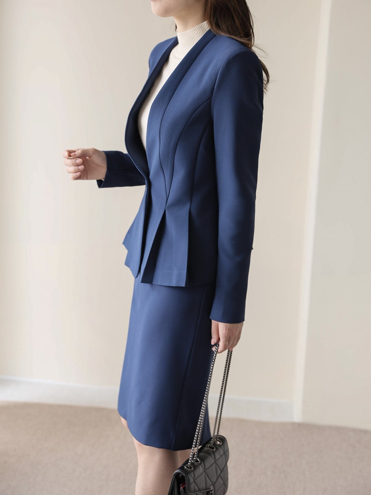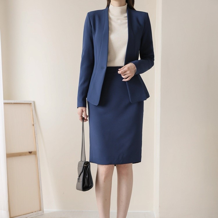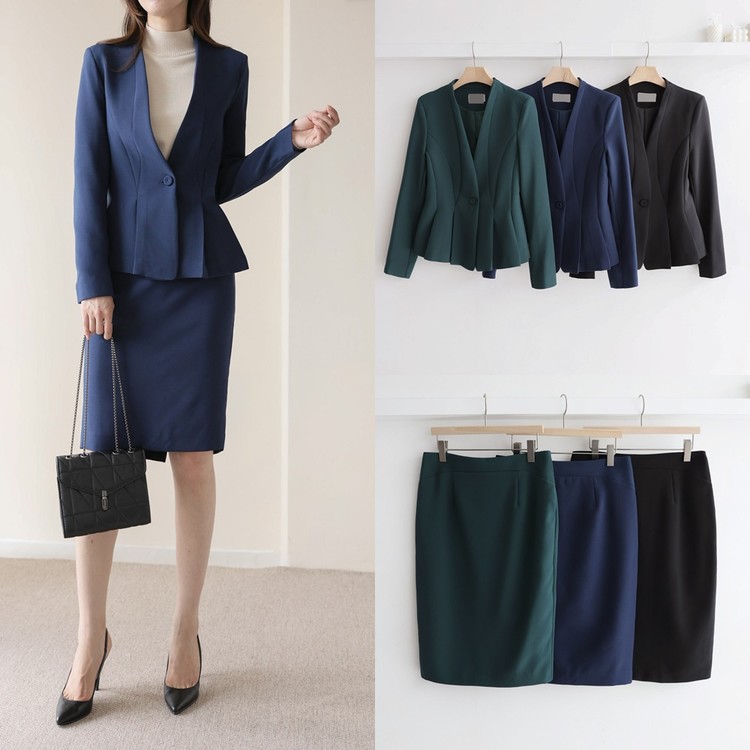 노카라 자켓 스판 스커트 투피스 셋업수트