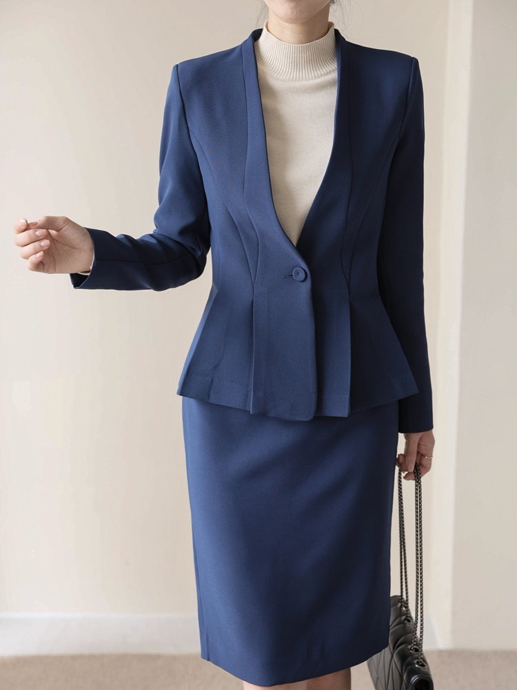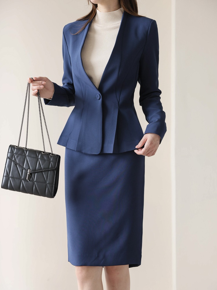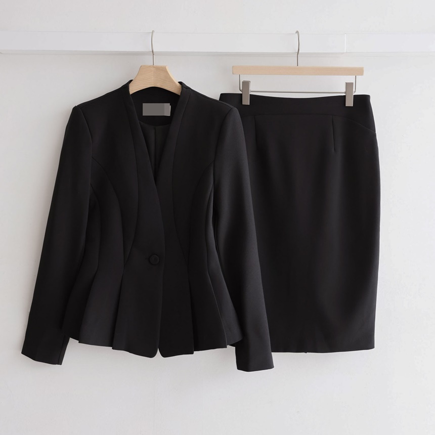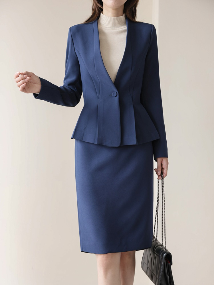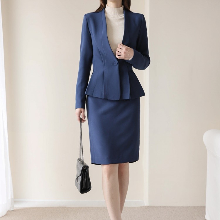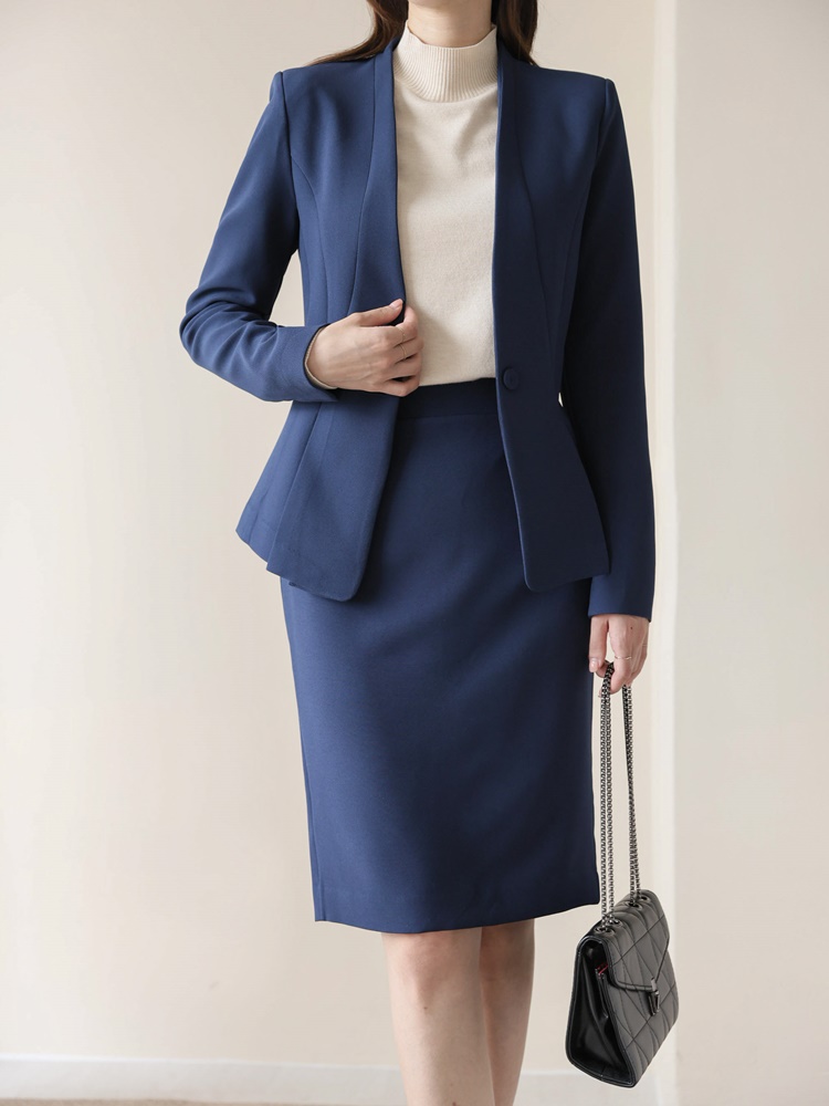 노카라 자켓 스판 스커트 투피스 셋업수트