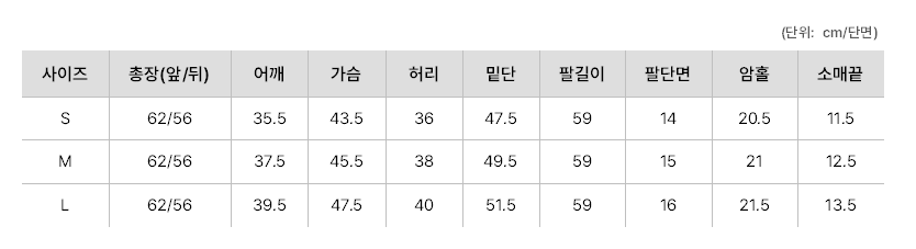 체형, 취향에 따라 사이즈가 다를 수 있습니다.