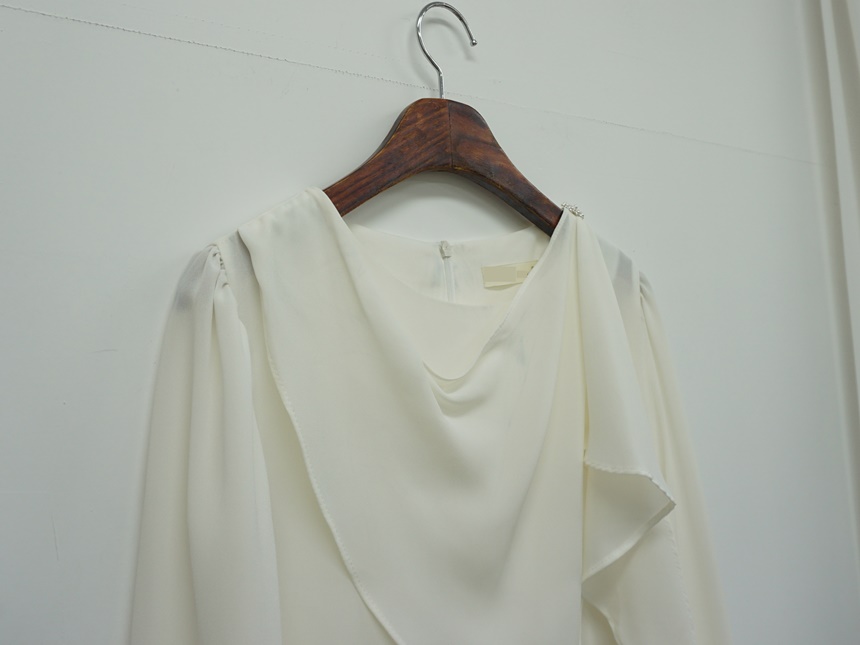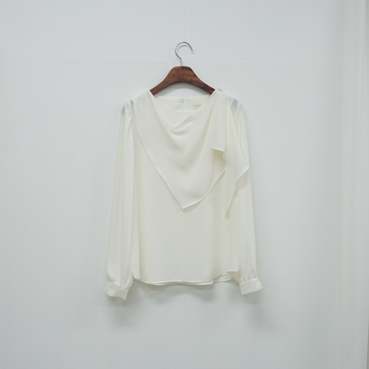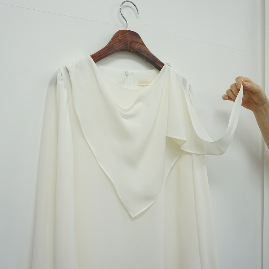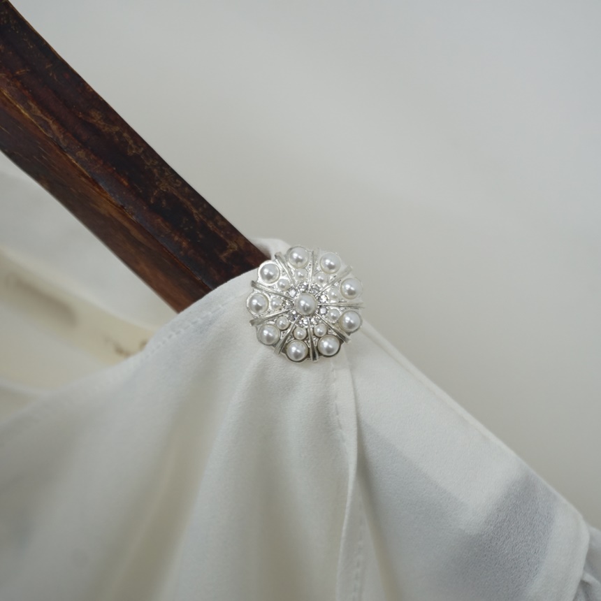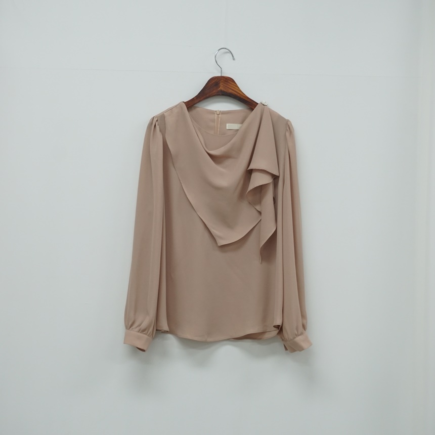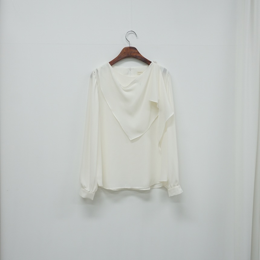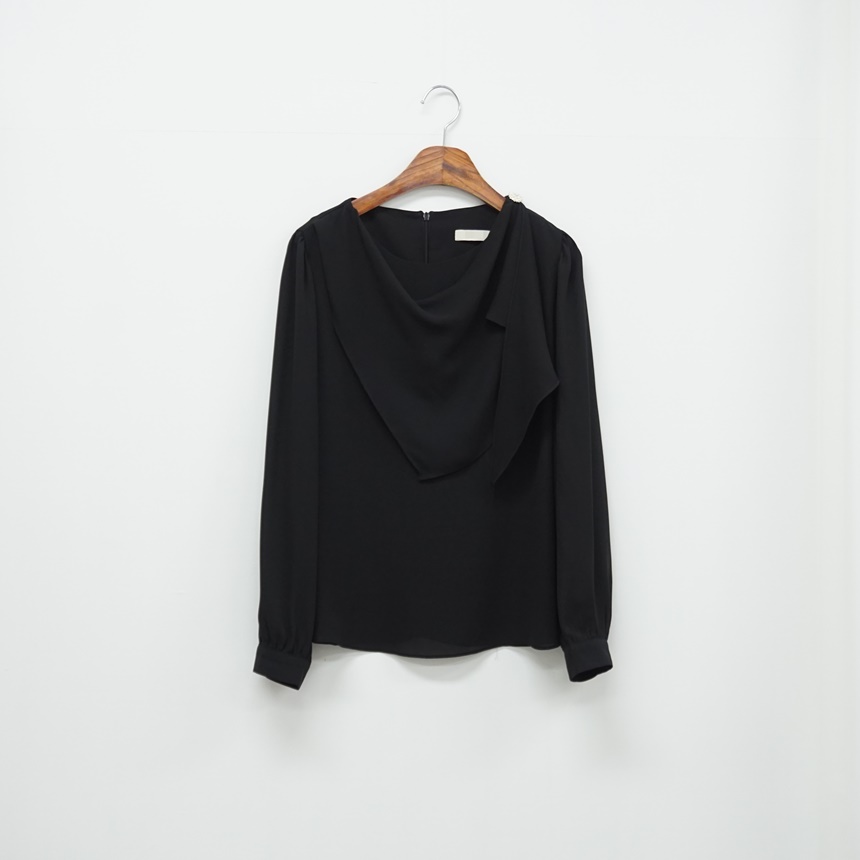 진주버튼 드레이프 숄 스카프 블라우스