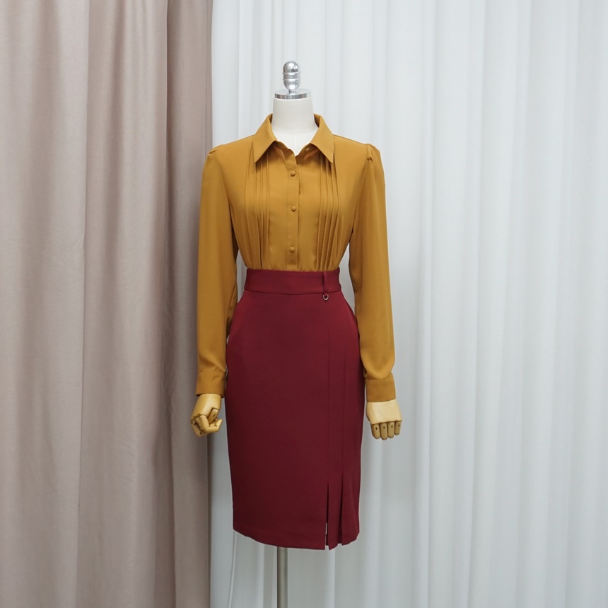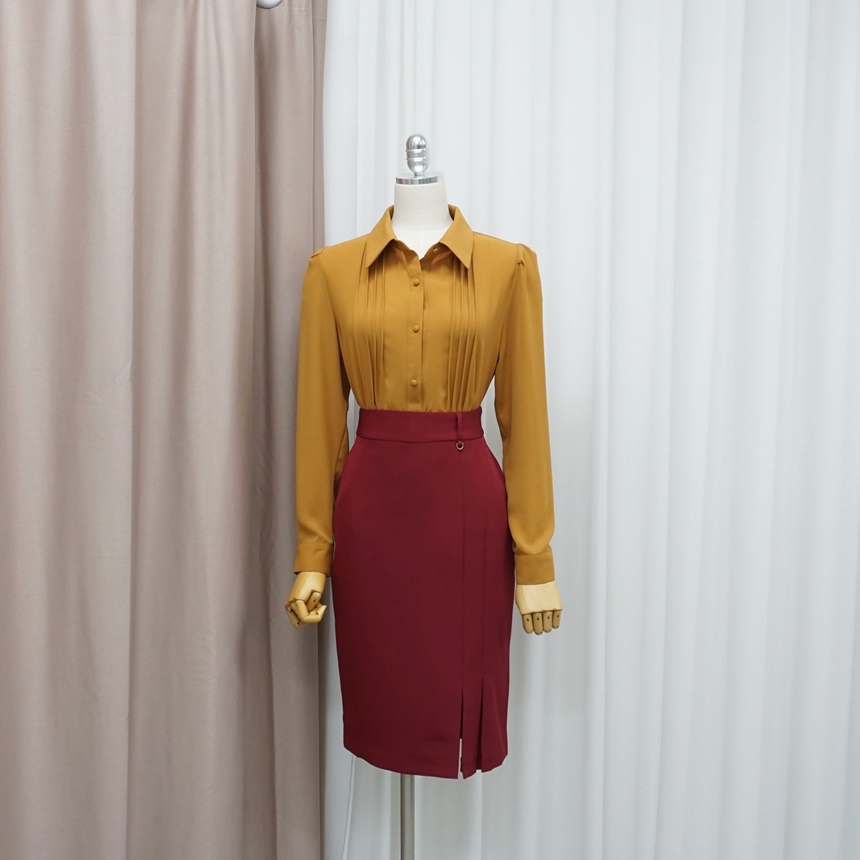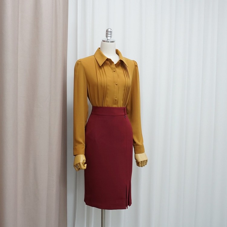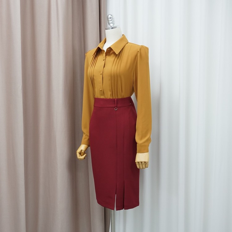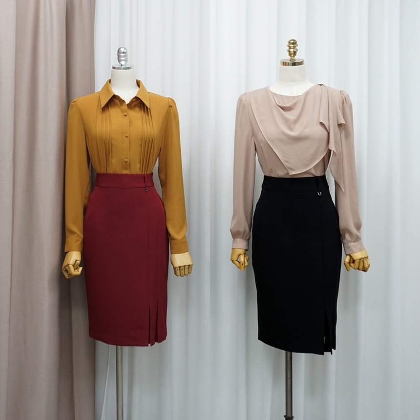슬림 스판 H라인 미디 정장 치마
