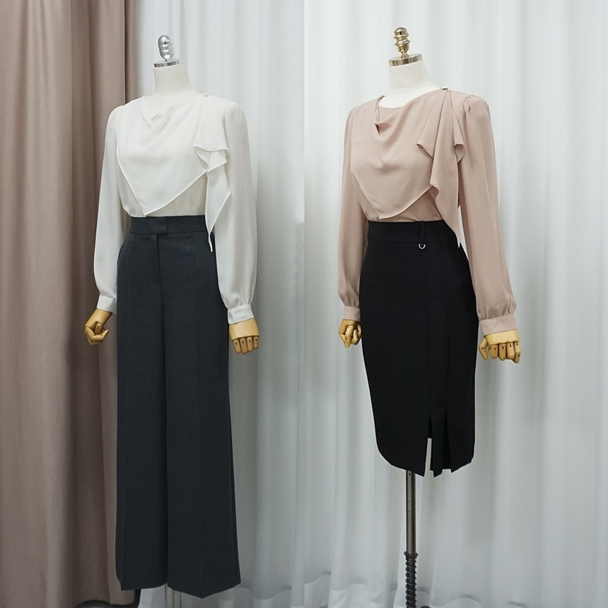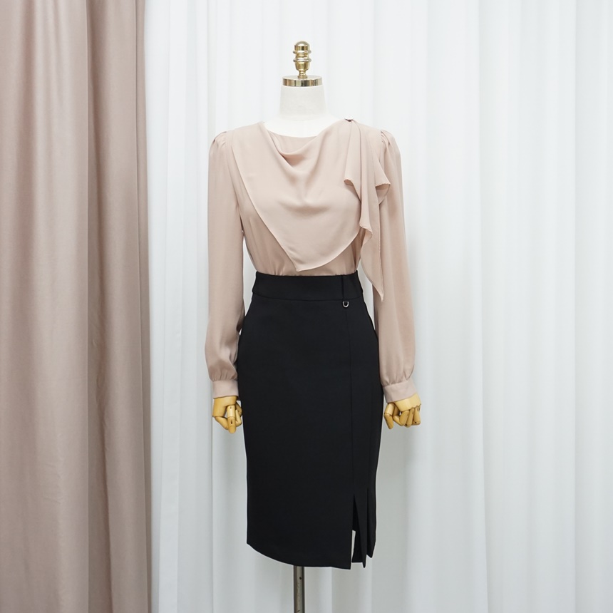 D링 포인트 사이드 슬릿 언발 스커트