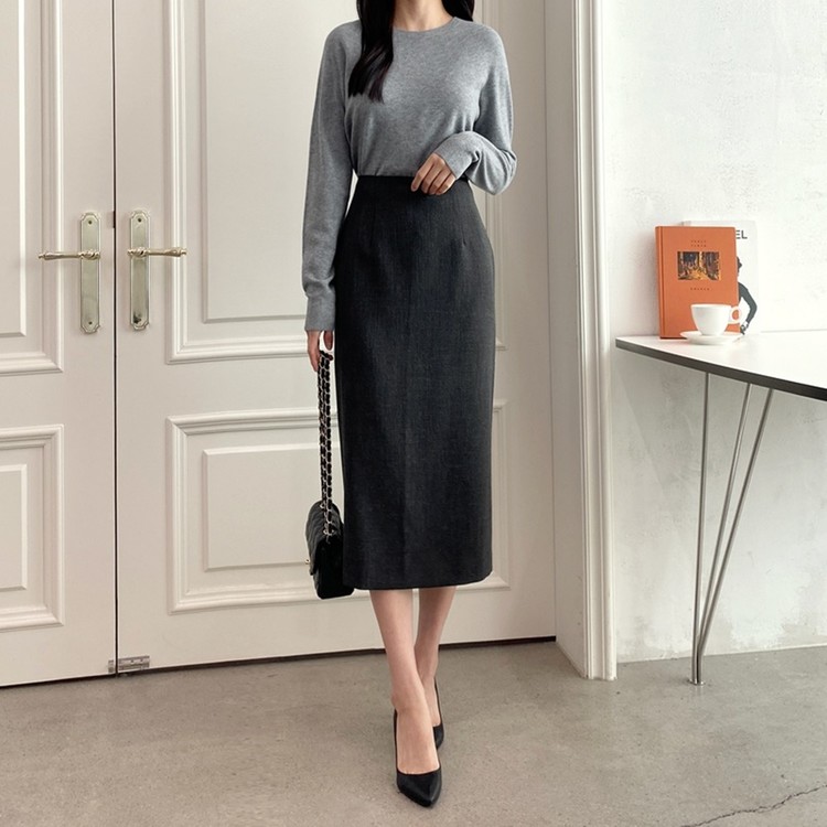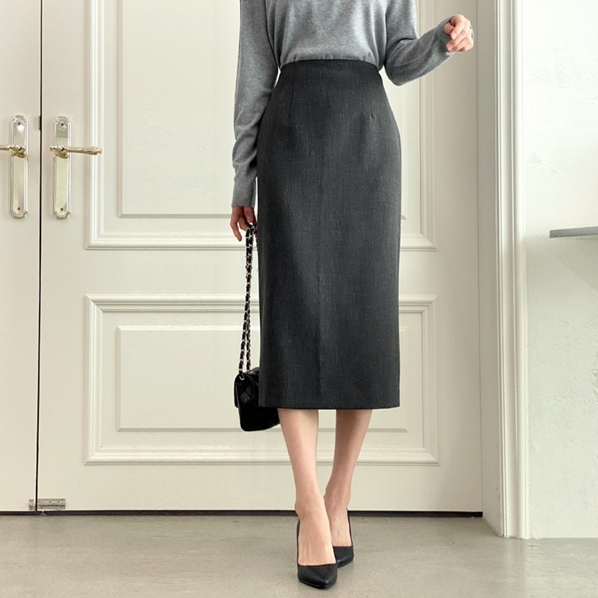 여성스러운 하이웨스트 H라인 슬릿 롱 스커트