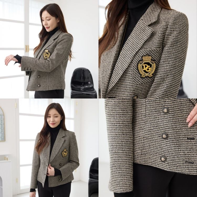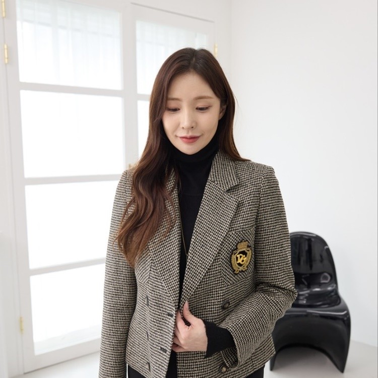 하운드 체크 테일러드 울 크롭 자켓