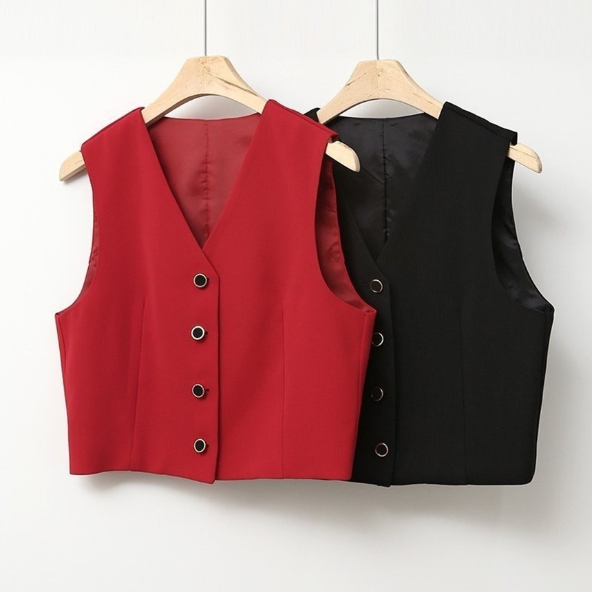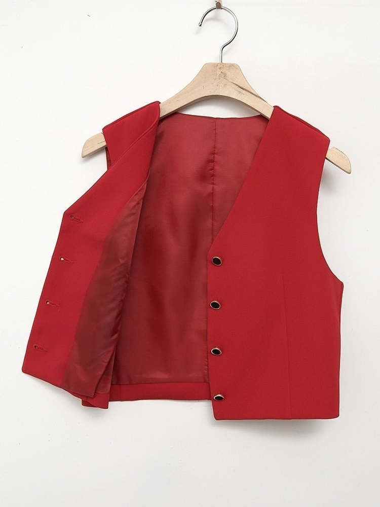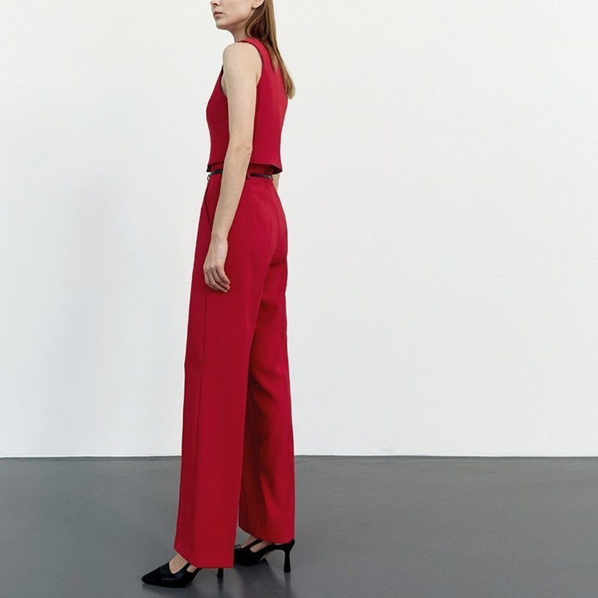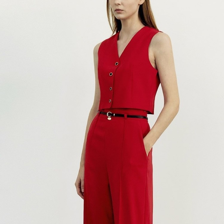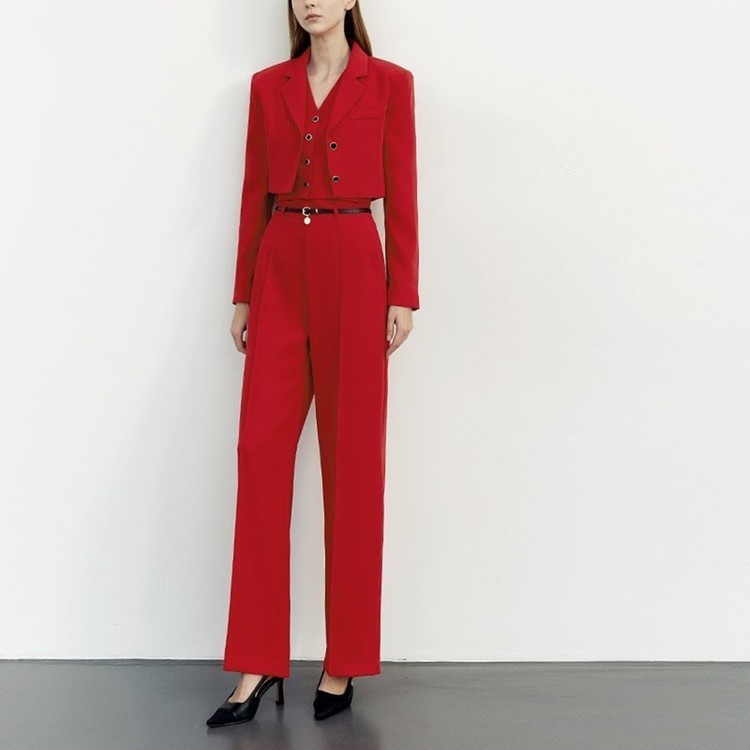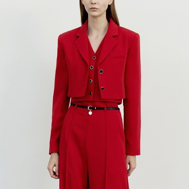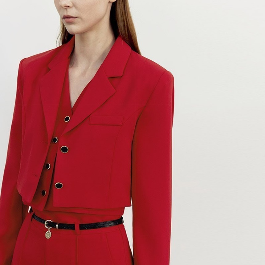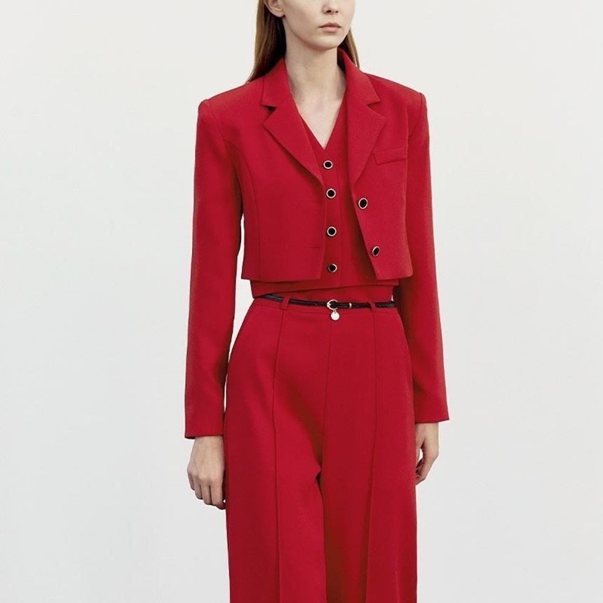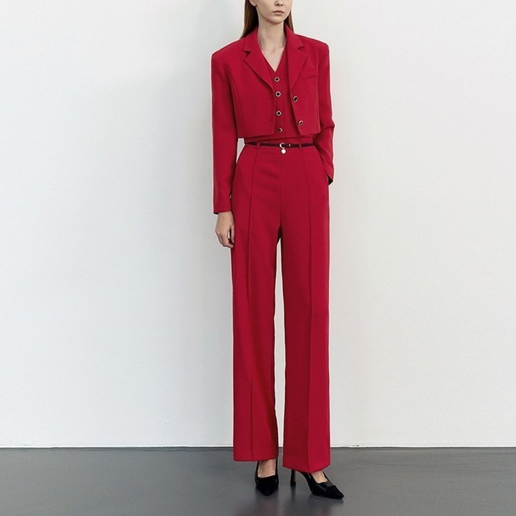 크롭 자켓 브이넥 조끼 일자 슬랙스 셋업 수트