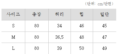 체형, 취향에 따라 사이즈가 다를 수 있습니다.