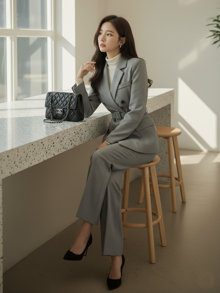 벨티드 바지정장세트 출근룩 하객룩