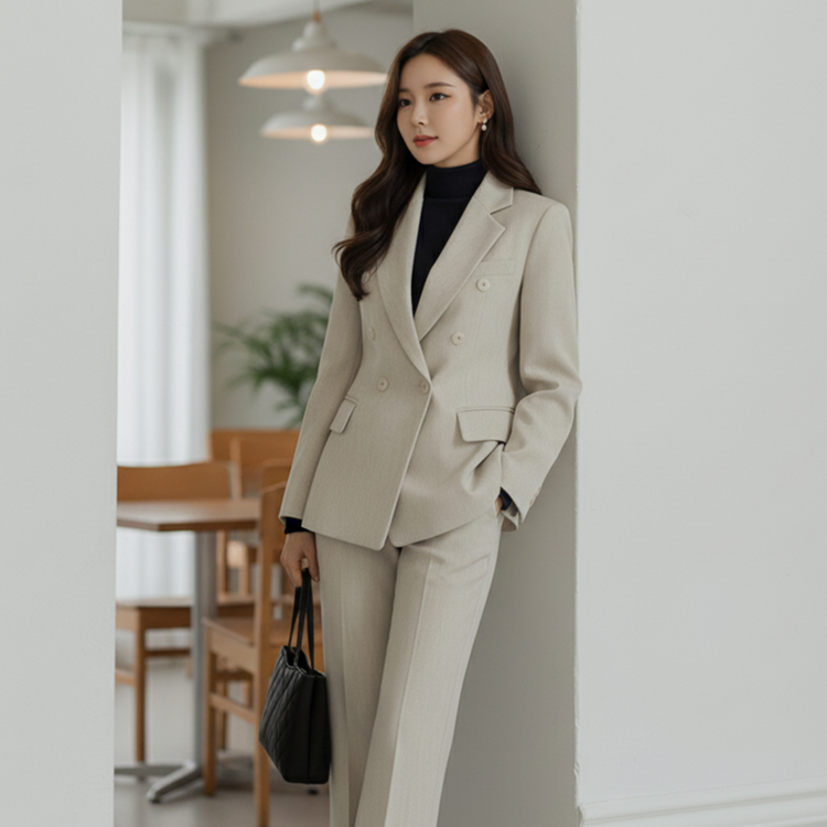 깔끔한 더블 재킷 겨울 출근룩