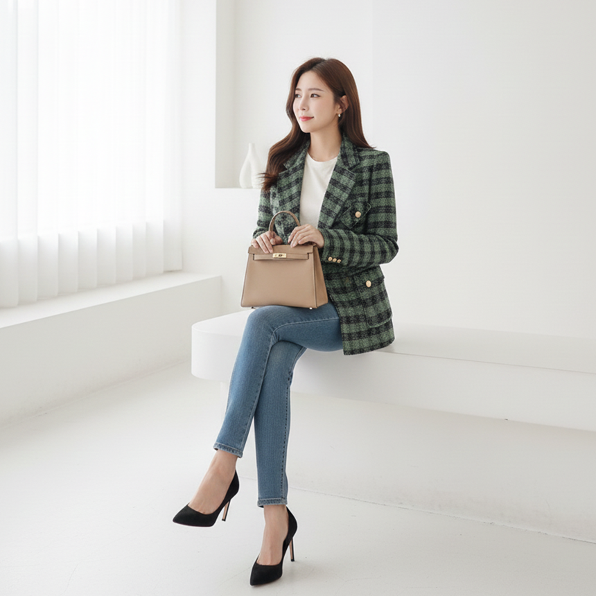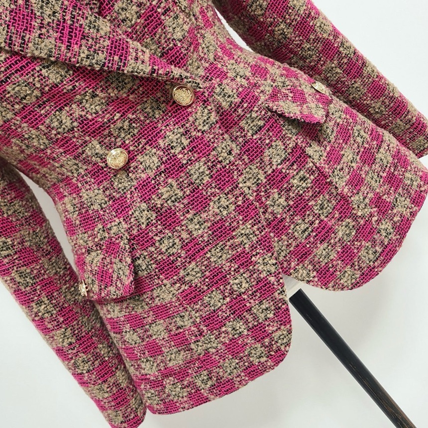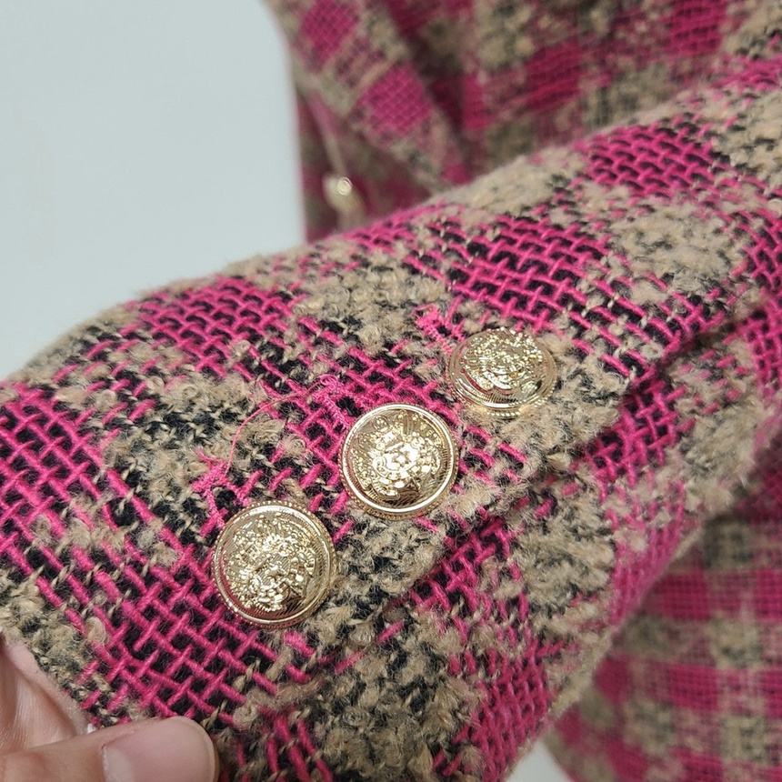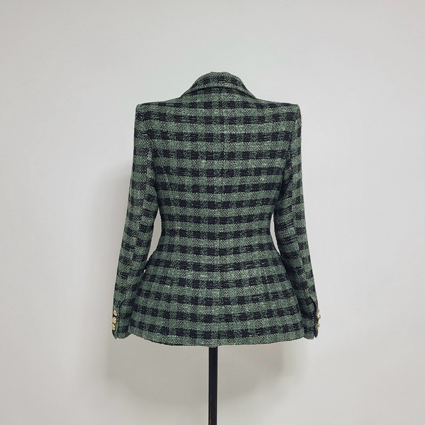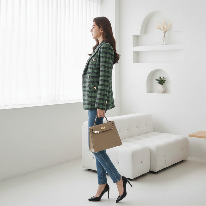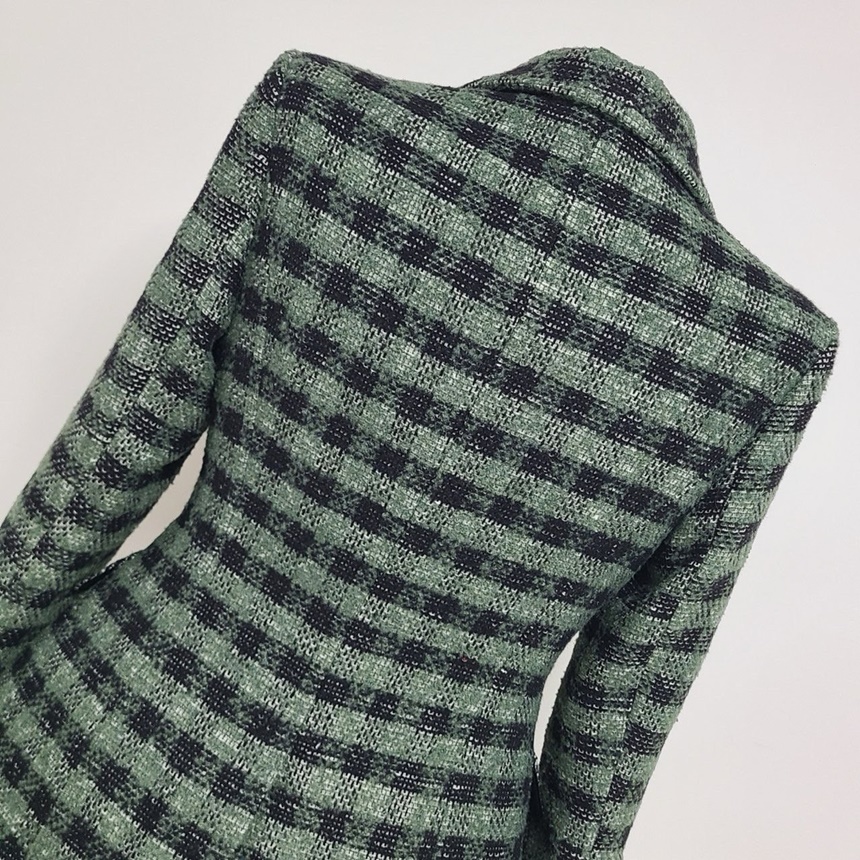 세련된 가슴 사이드 플랩 포켓 체크 자켓