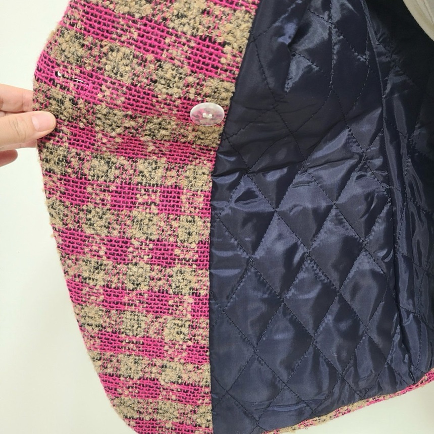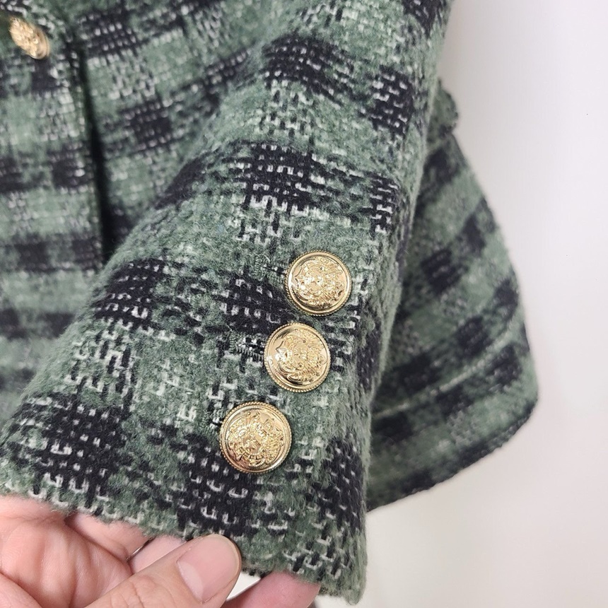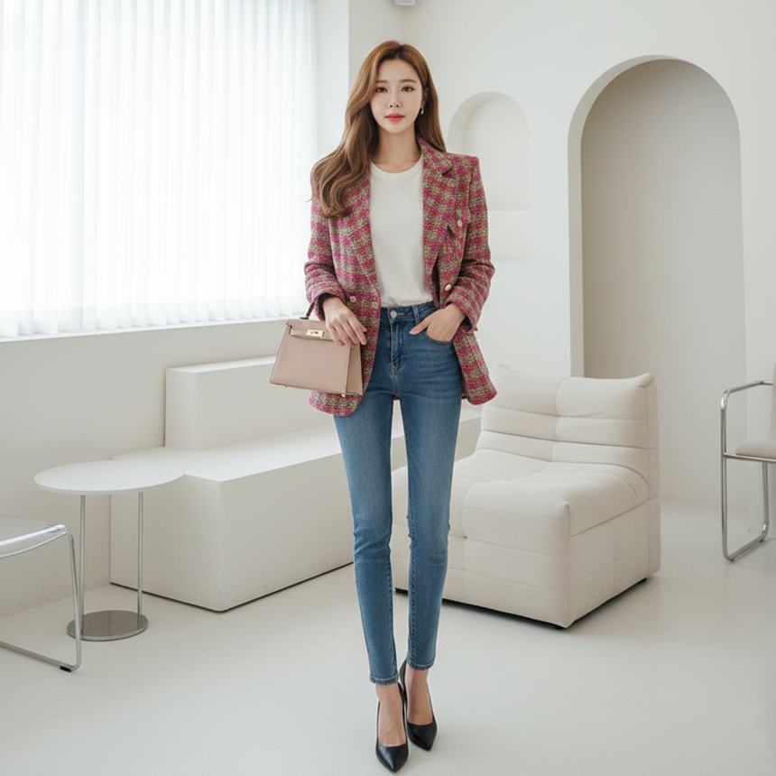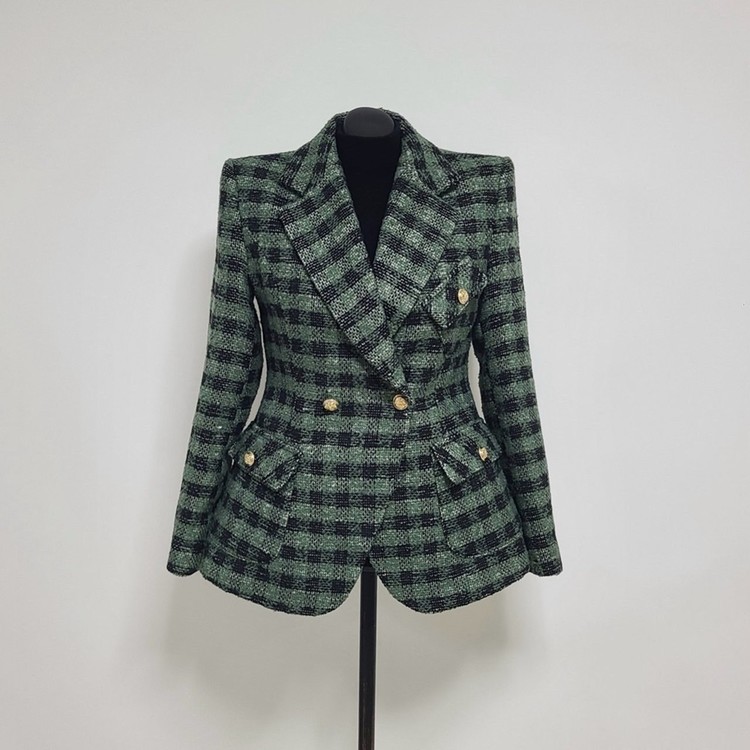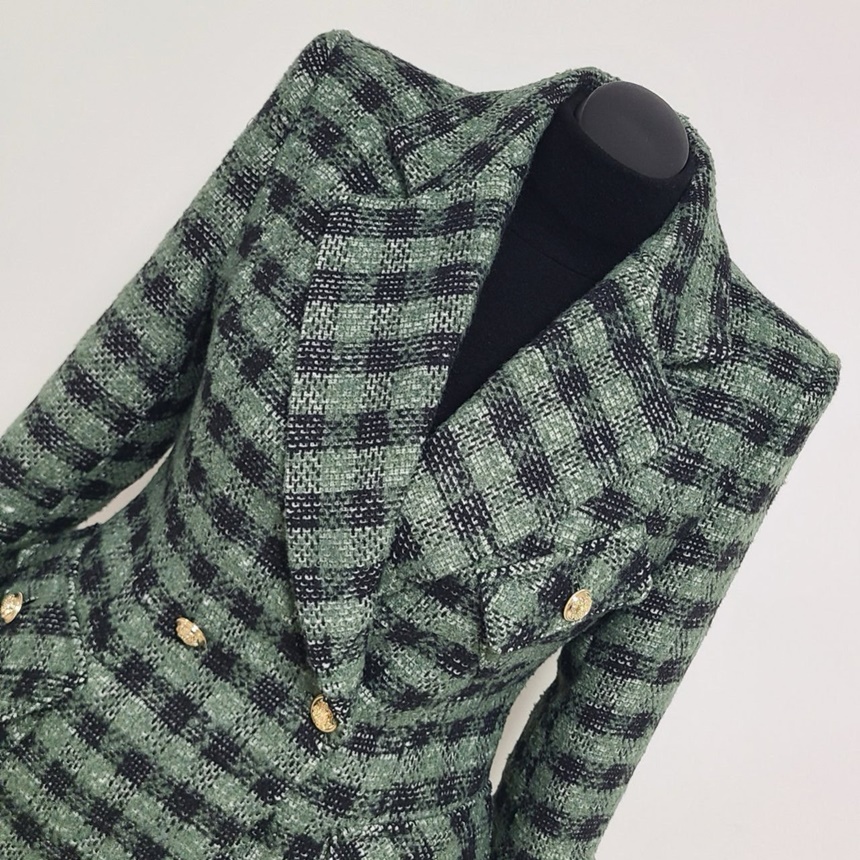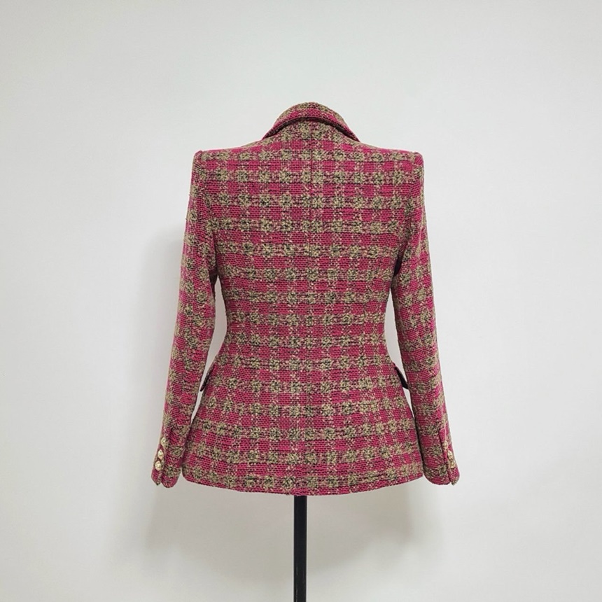 세련된 가슴 사이드 플랩 포켓 체크 자켓