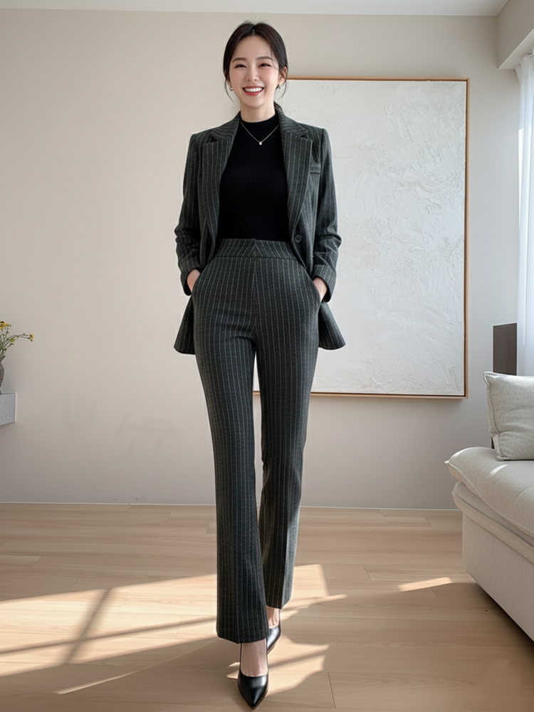 겨울 스트라이프 바지정장세트 출근룩