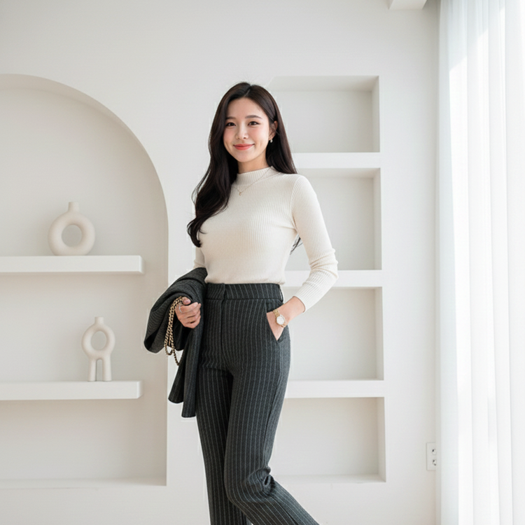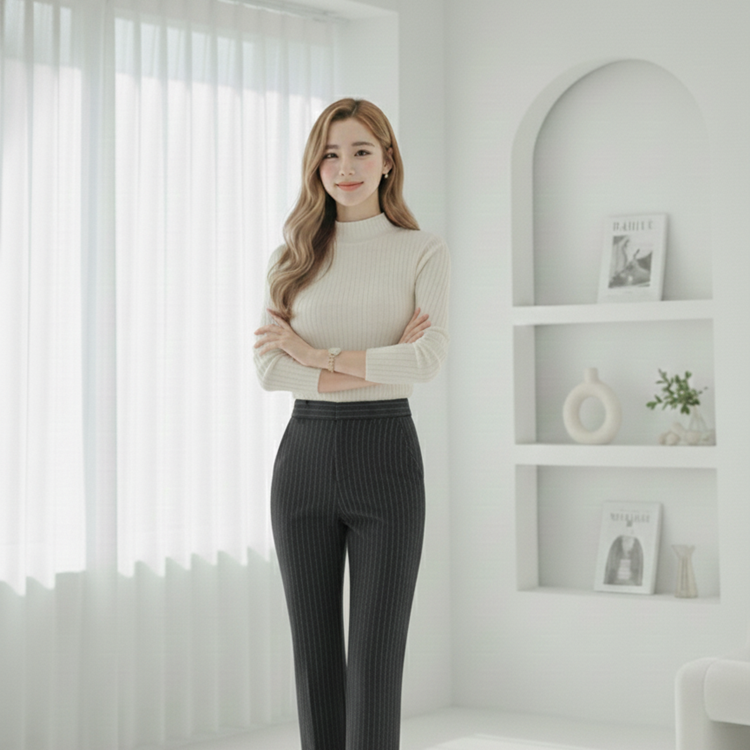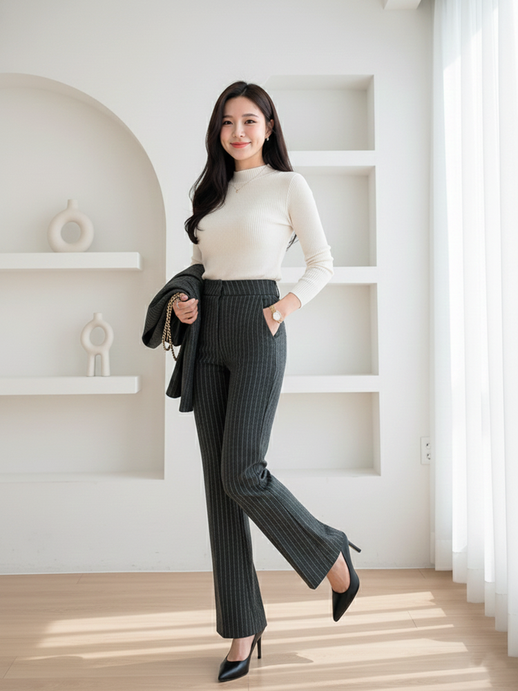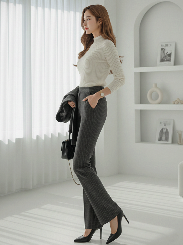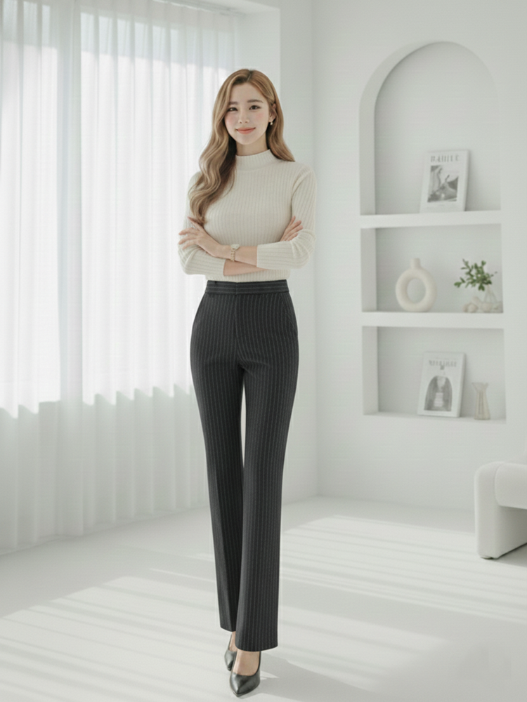겨울 스트라이프 부츠컷 슬랙스 오피스룩