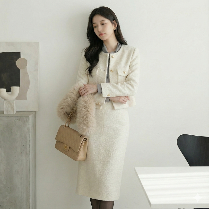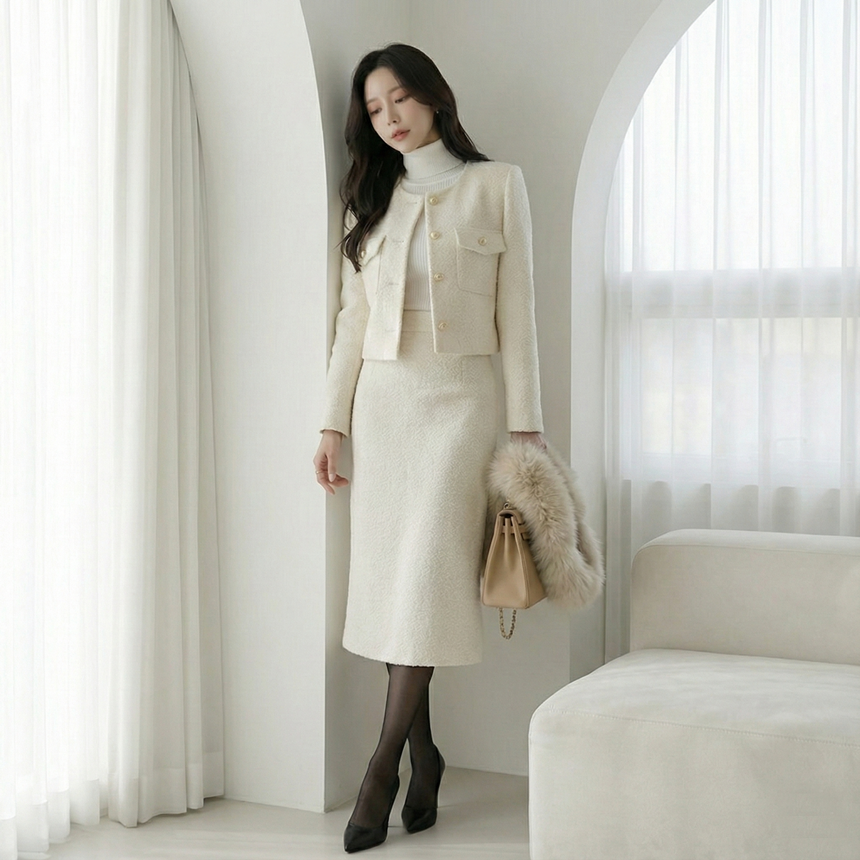 고급스러운 몽글몽글 정장 치마 오피스룩