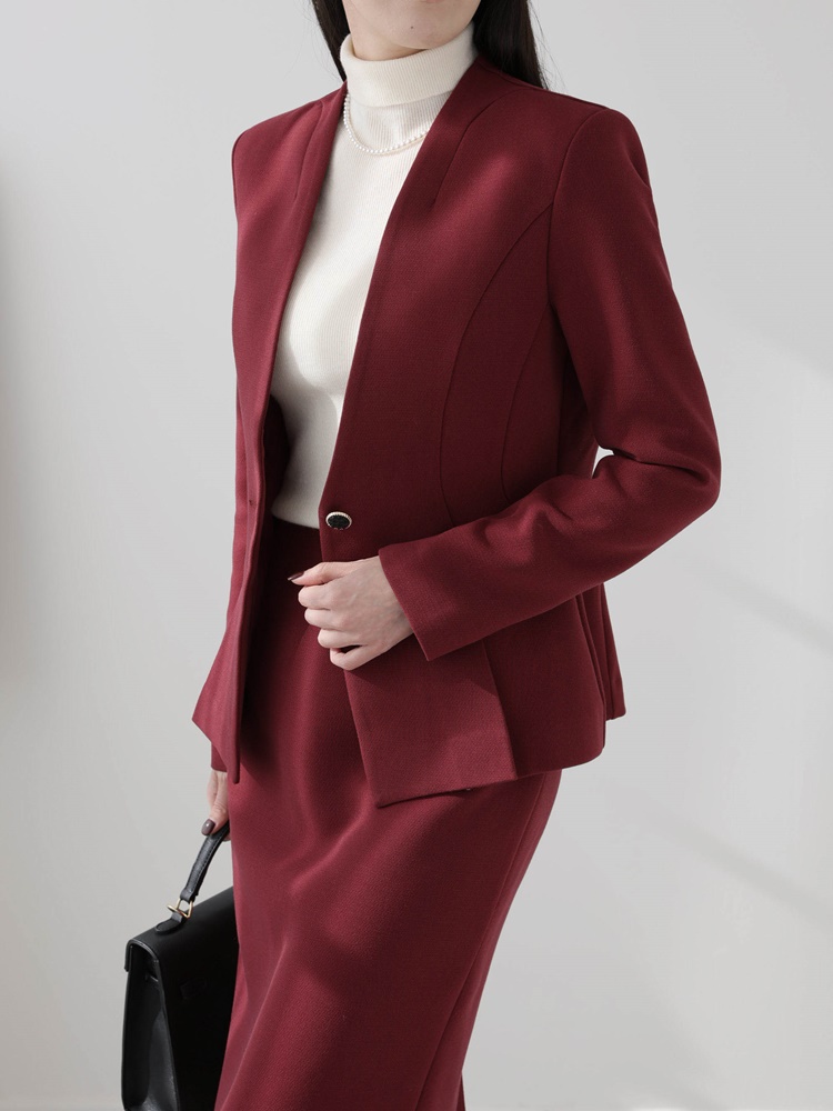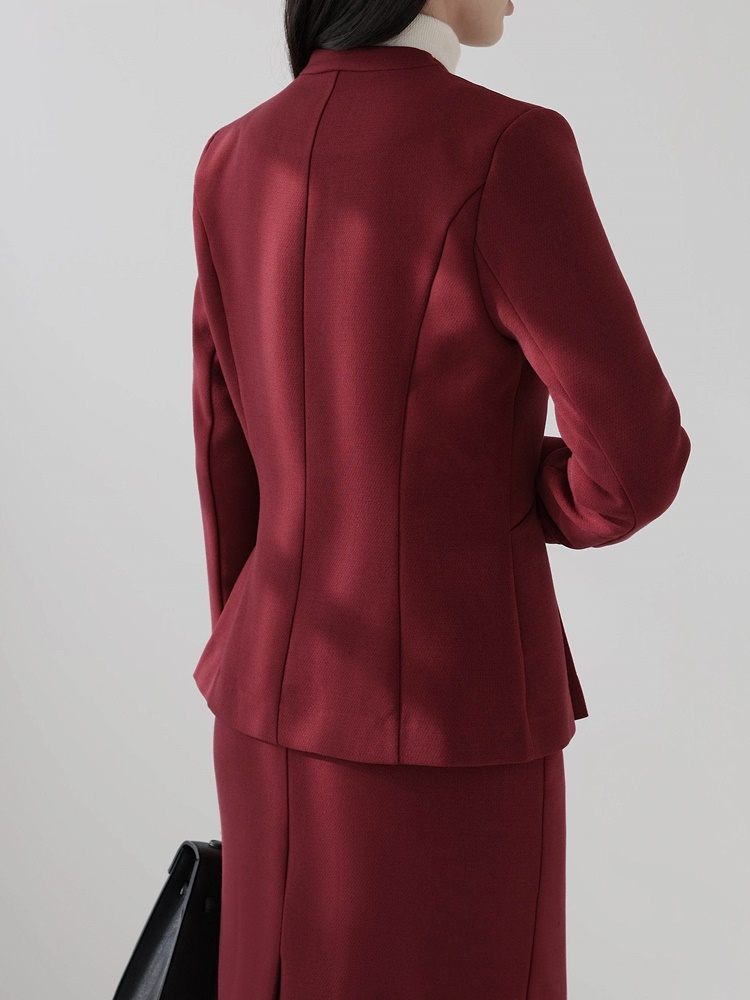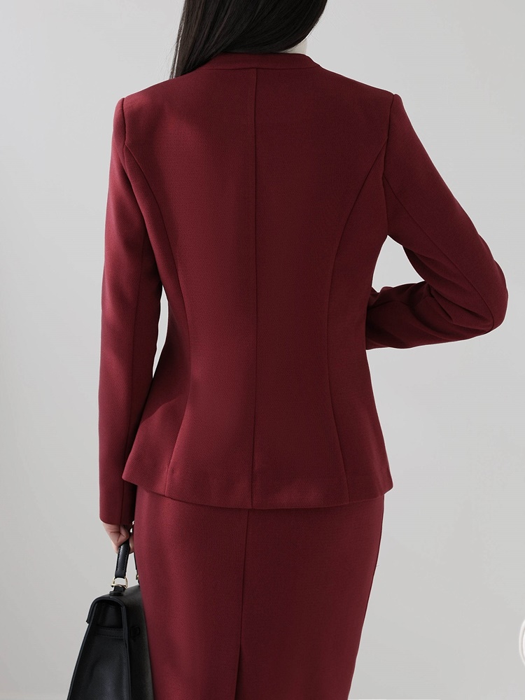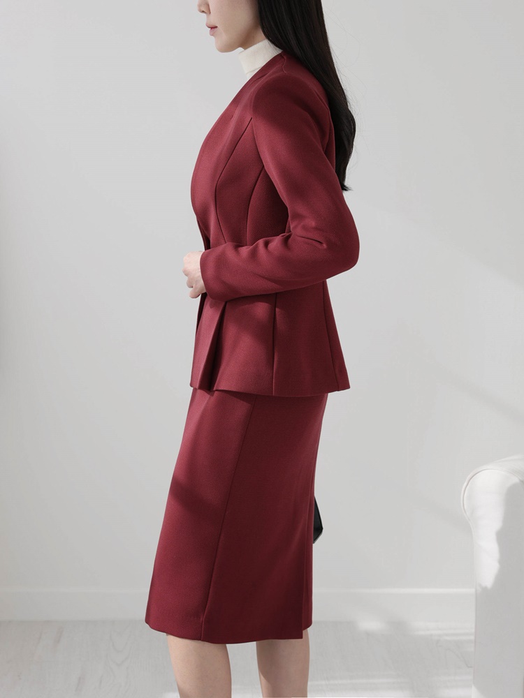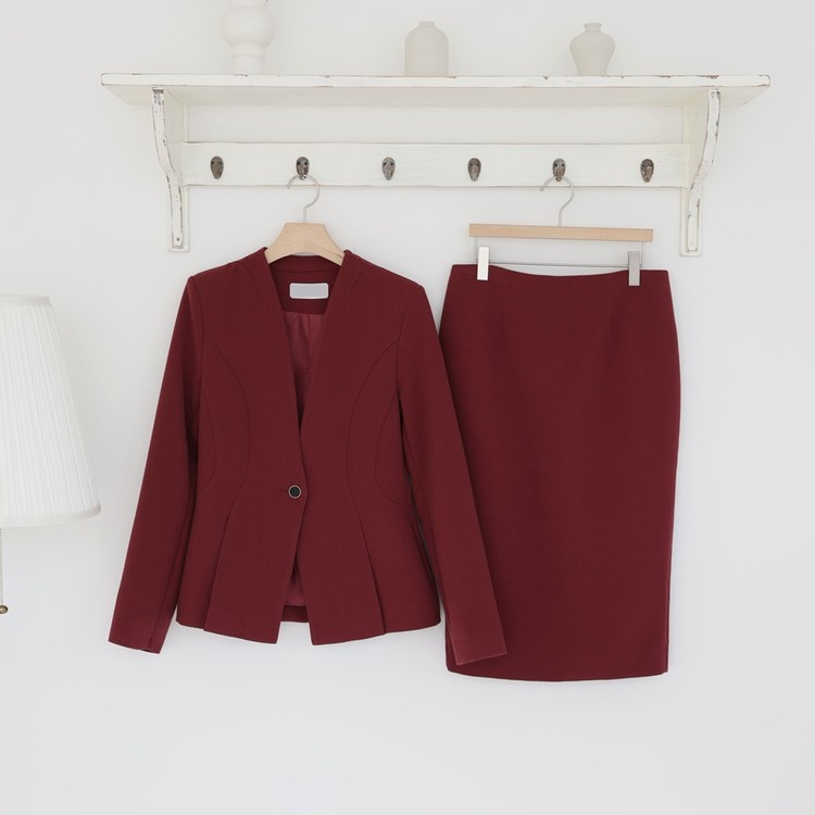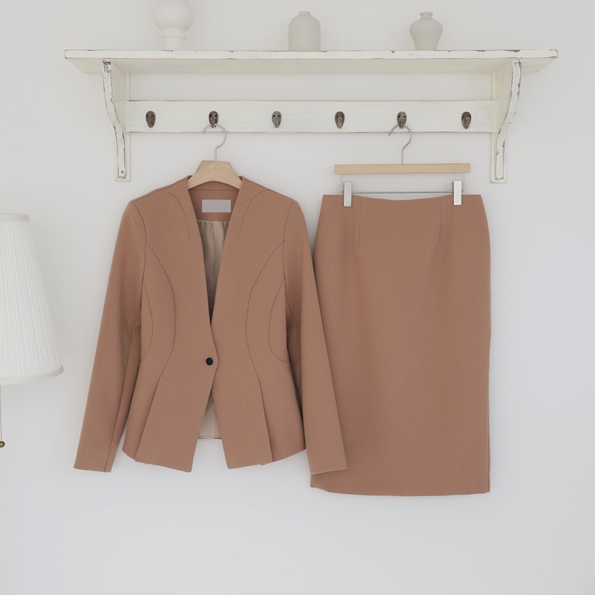 노카라 페플럼 자켓 스판 스커트 투피스 셋업수트