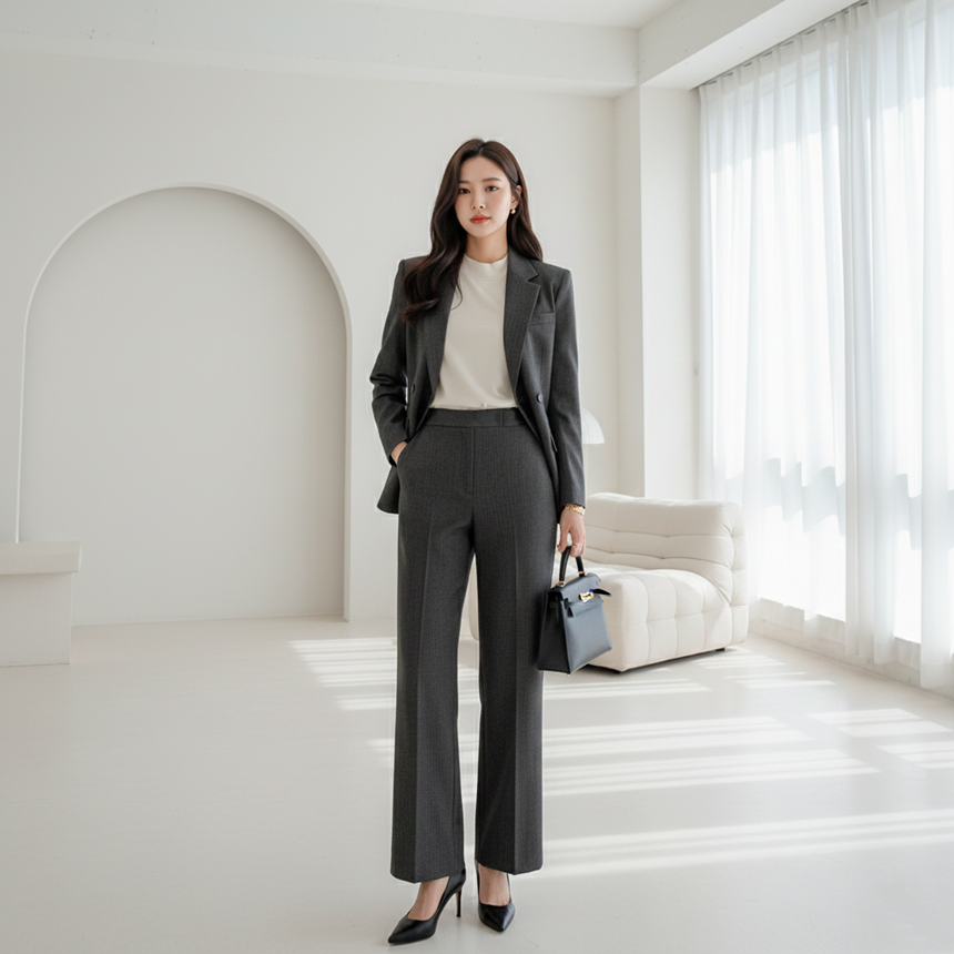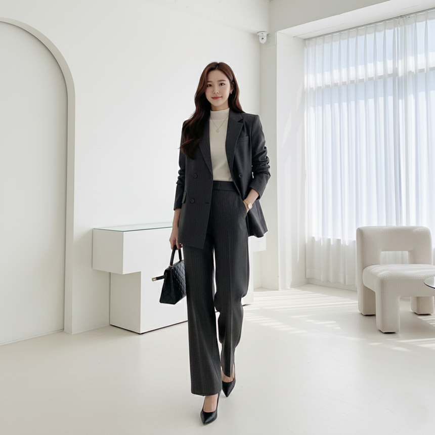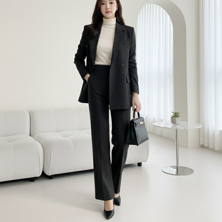 클래식 핀스트라이프 스판 슬랙스 팬츠
