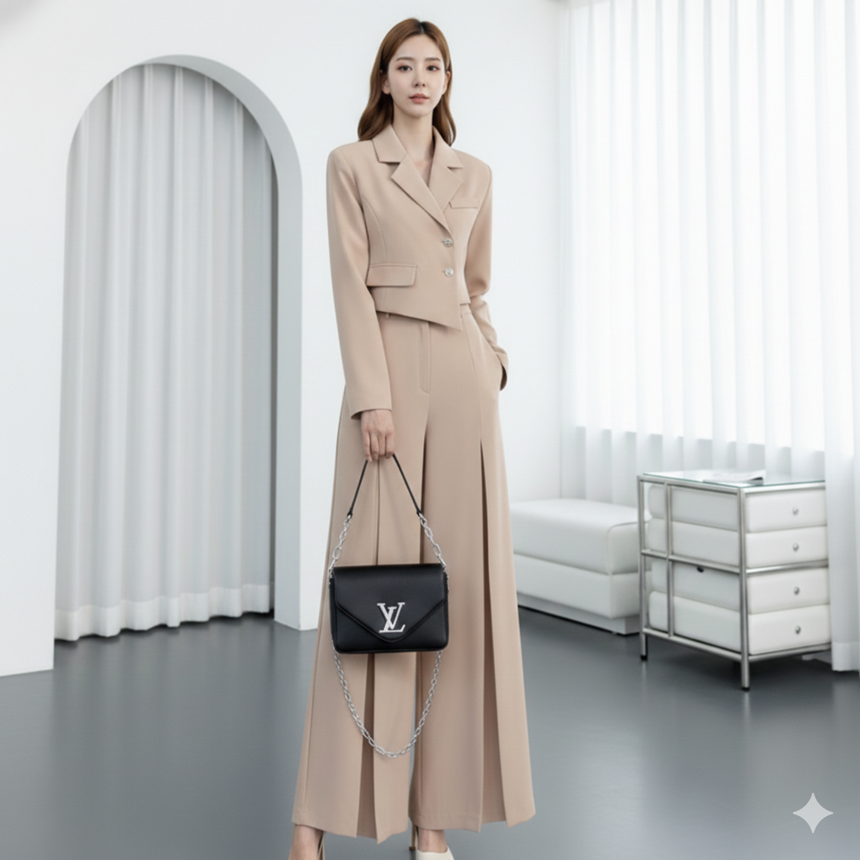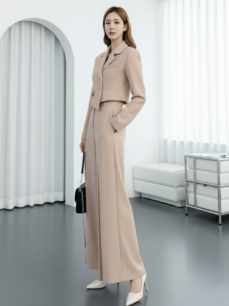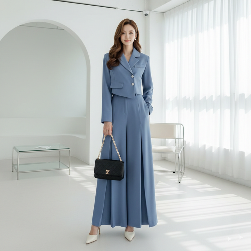 언발 크롭 바지정장세트 하객룩 코디