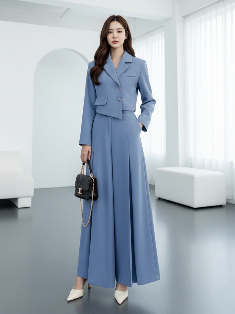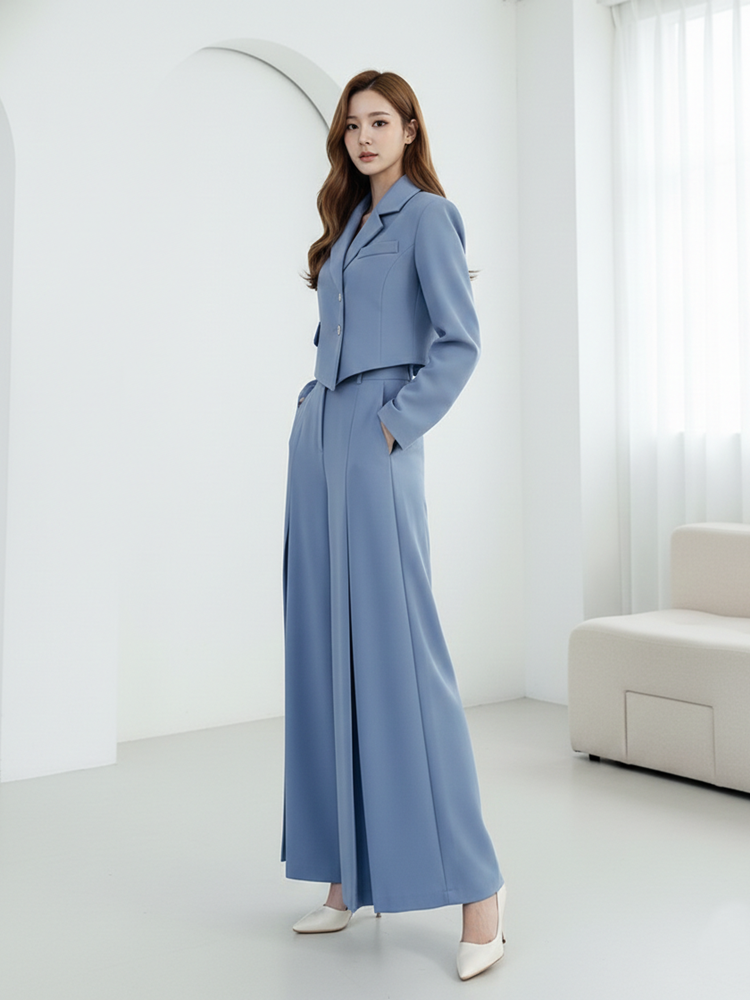 스판 숏자켓 와이드 슬랙스 팬츠 투피스 셋업수트