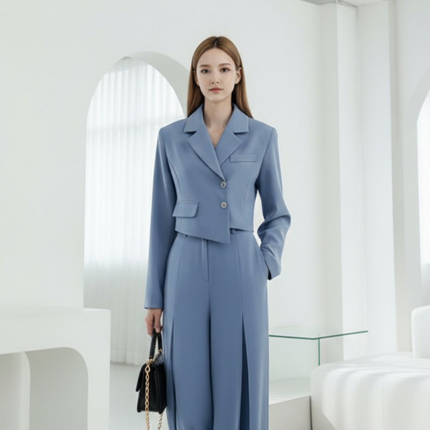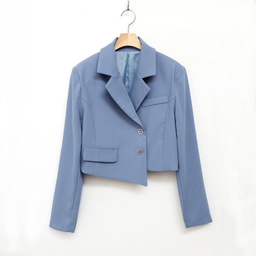 언발 크롭 스판 자켓 봄 가을 여성 아우터