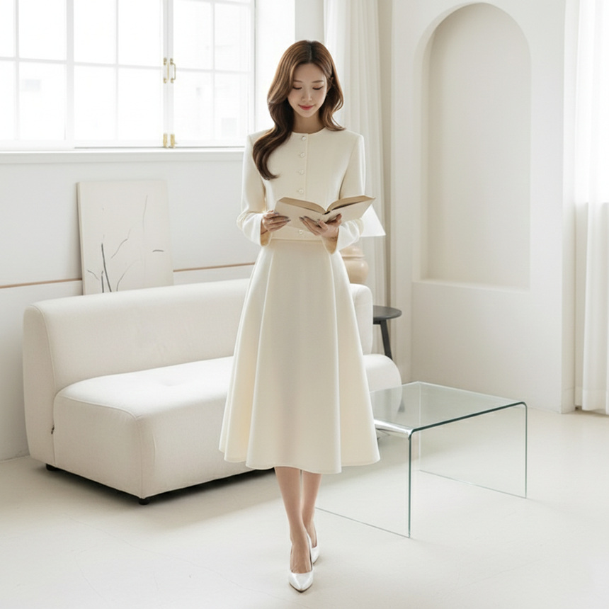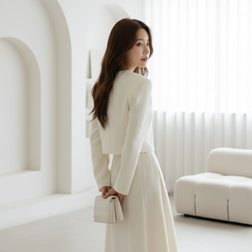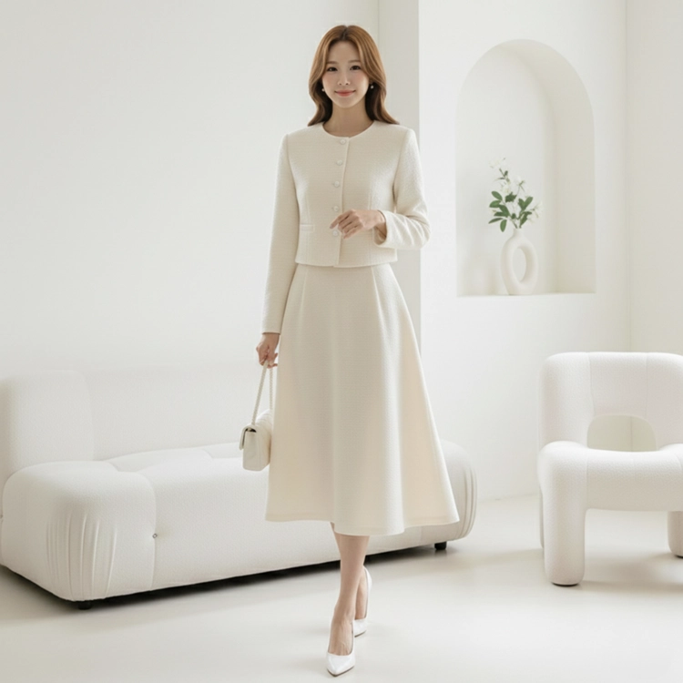 트위드 정장 치마 체형커버룩 하객룩 코디