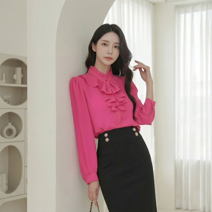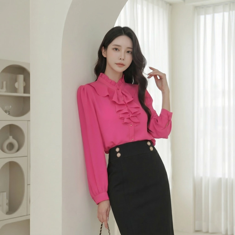 여성 프릴 브라우스 하객룩 오피스룩