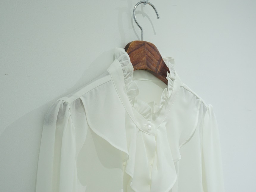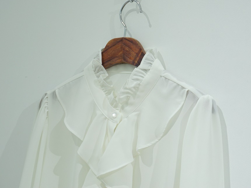 볼륨 케스케이딩 러플 쉬폰 블라우스