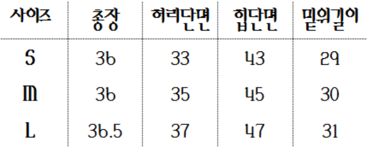 하단 사이즈 표를