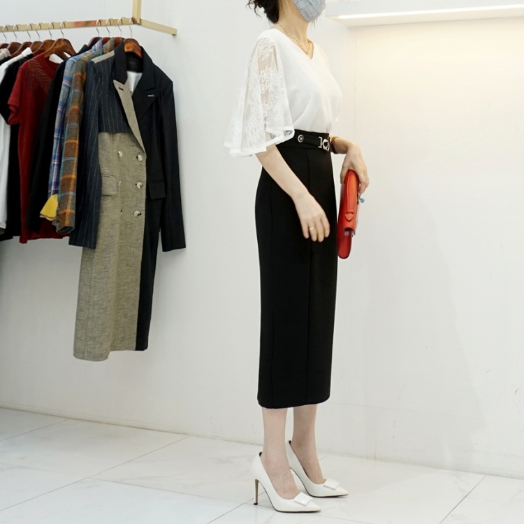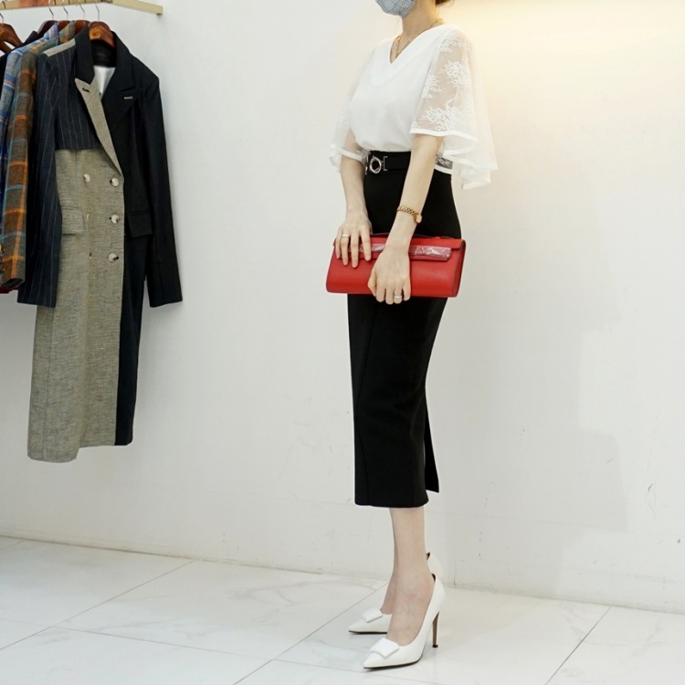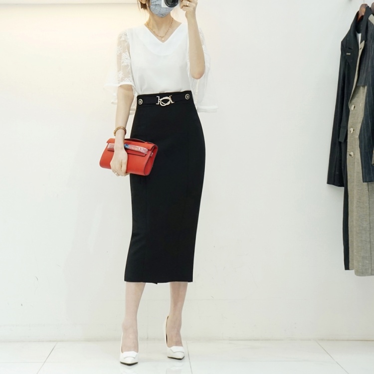 허리선이 높게 잡힌 하이웨스트 라인으로