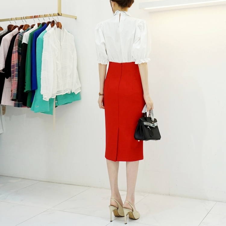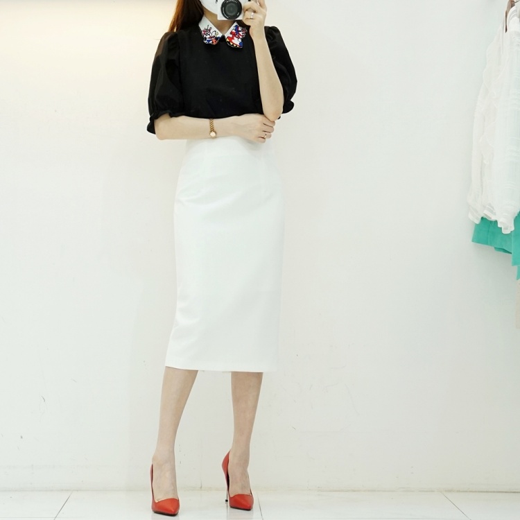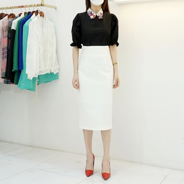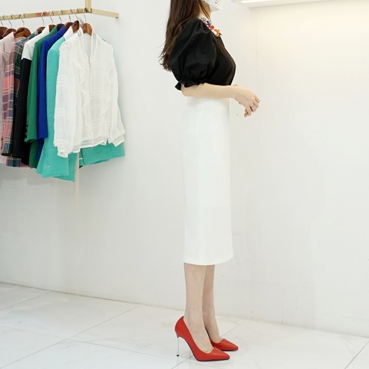 하이웨스트 슬릿 미디 H라인스커트 스판 슬림