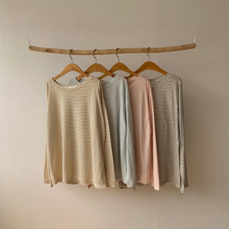 여성 여름 긴팔 줄무늬 티셔츠
