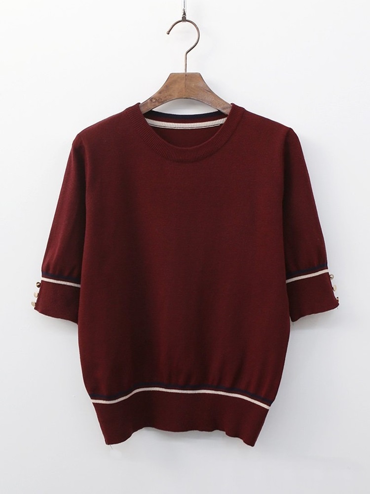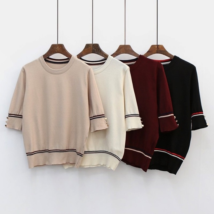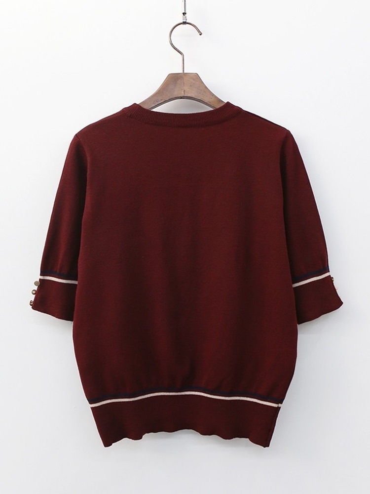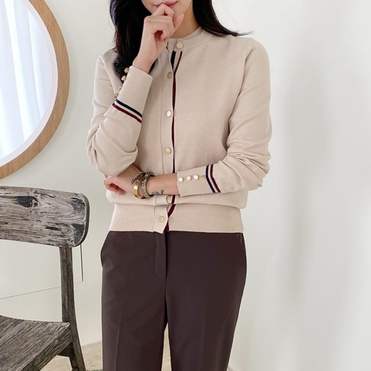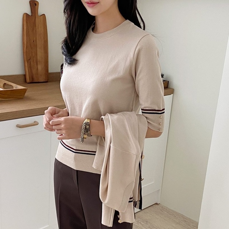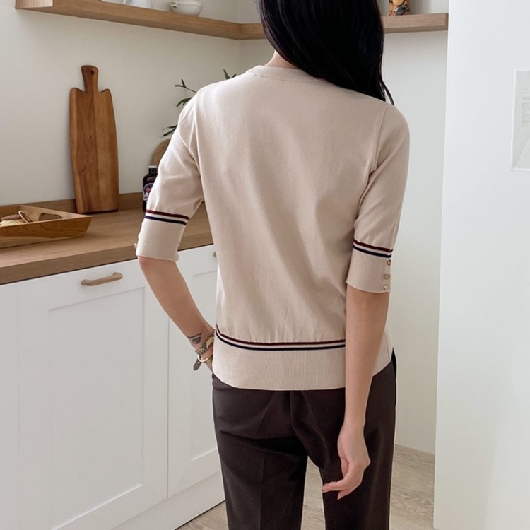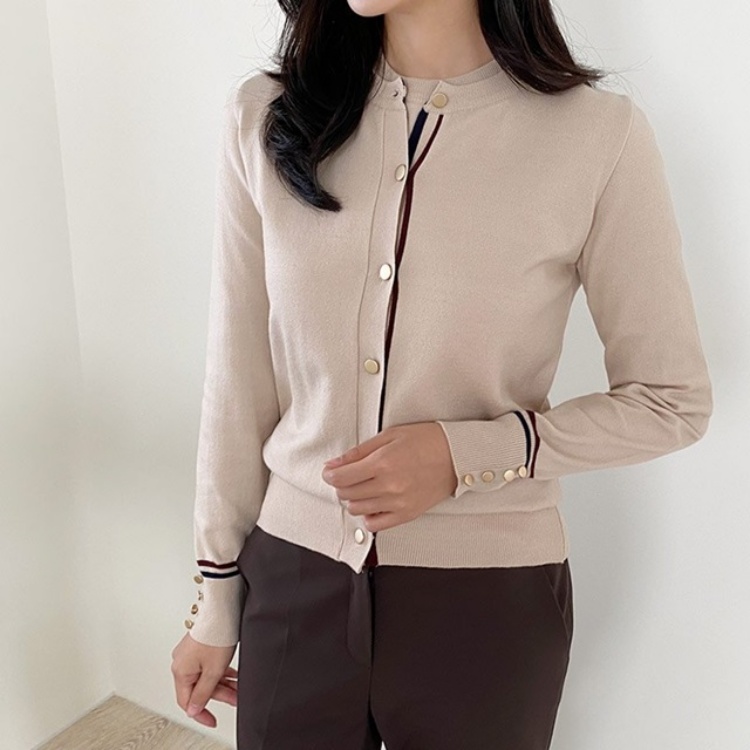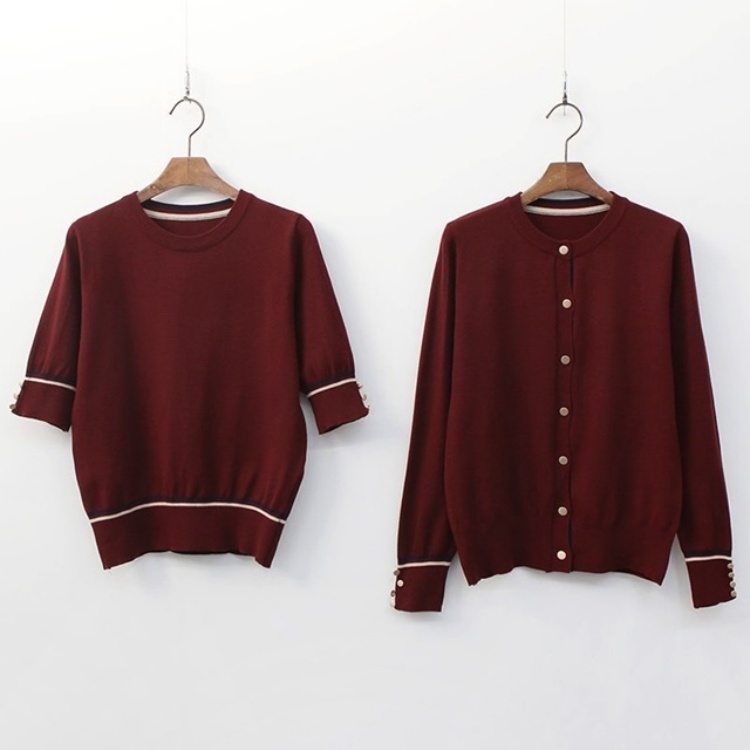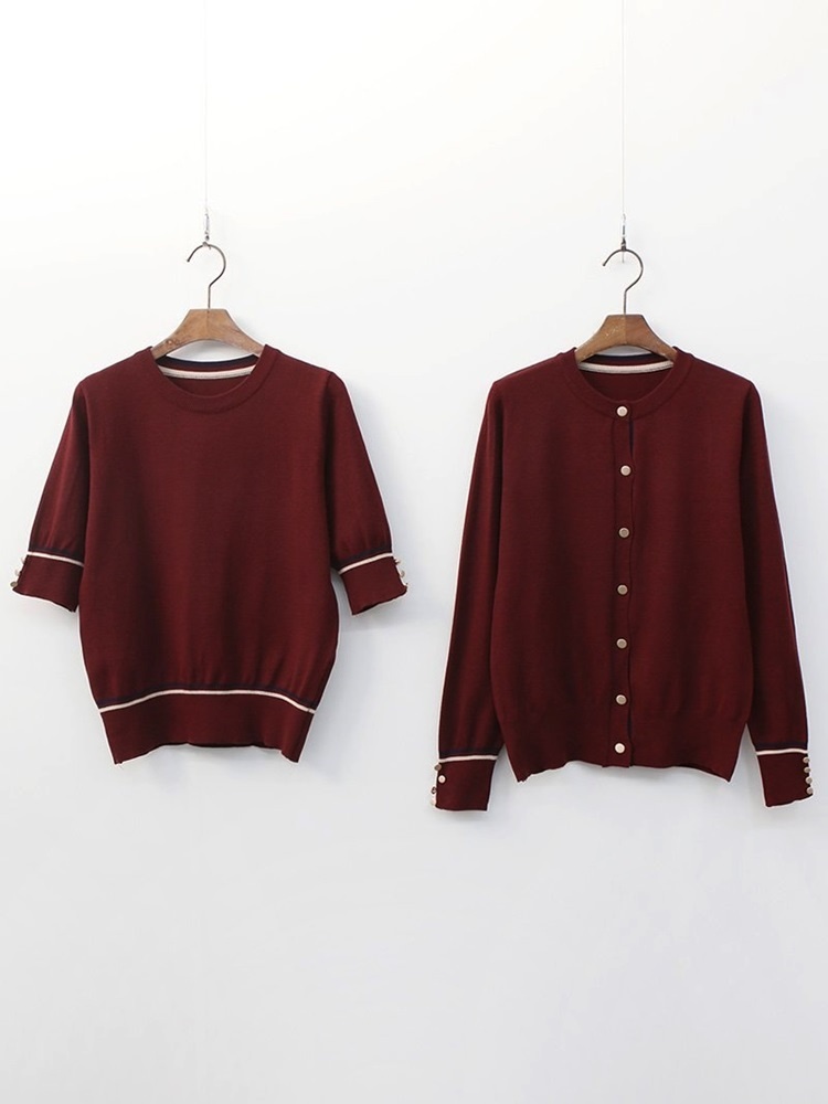 여성 투톤 배색 라운드 반팔 니트 티셔츠 가디건 세트