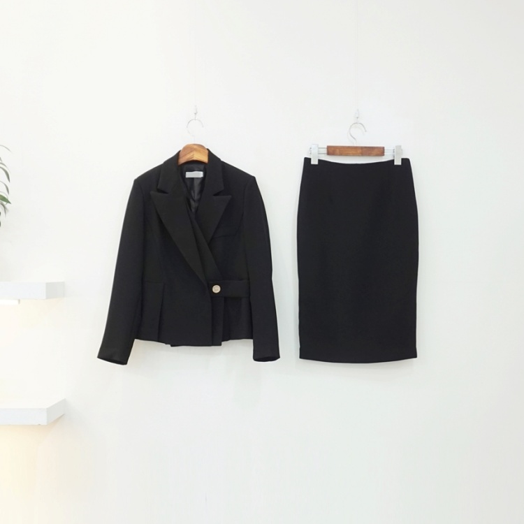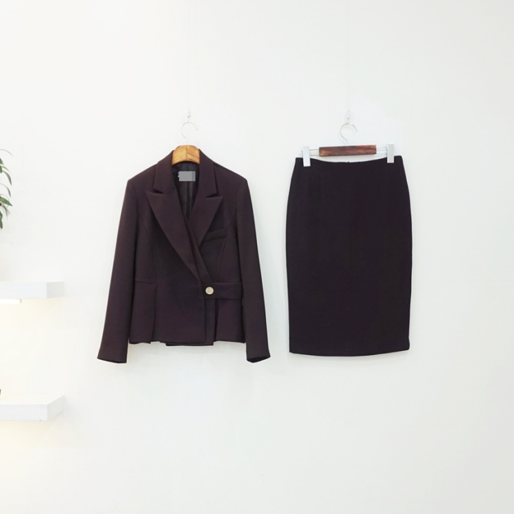 벨티드 랩 밑단 플리츠 자켓 H라인 스커트