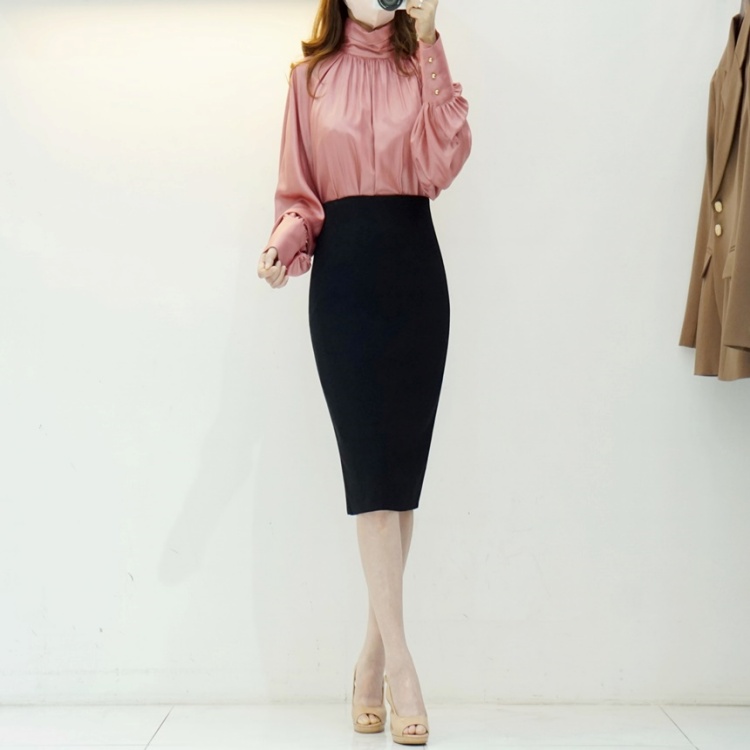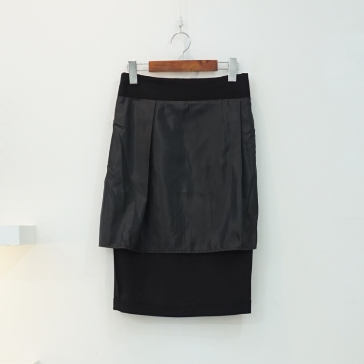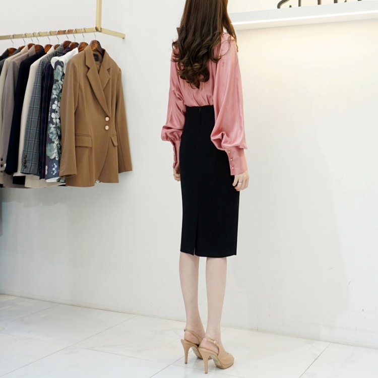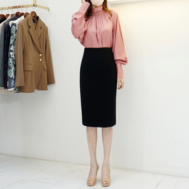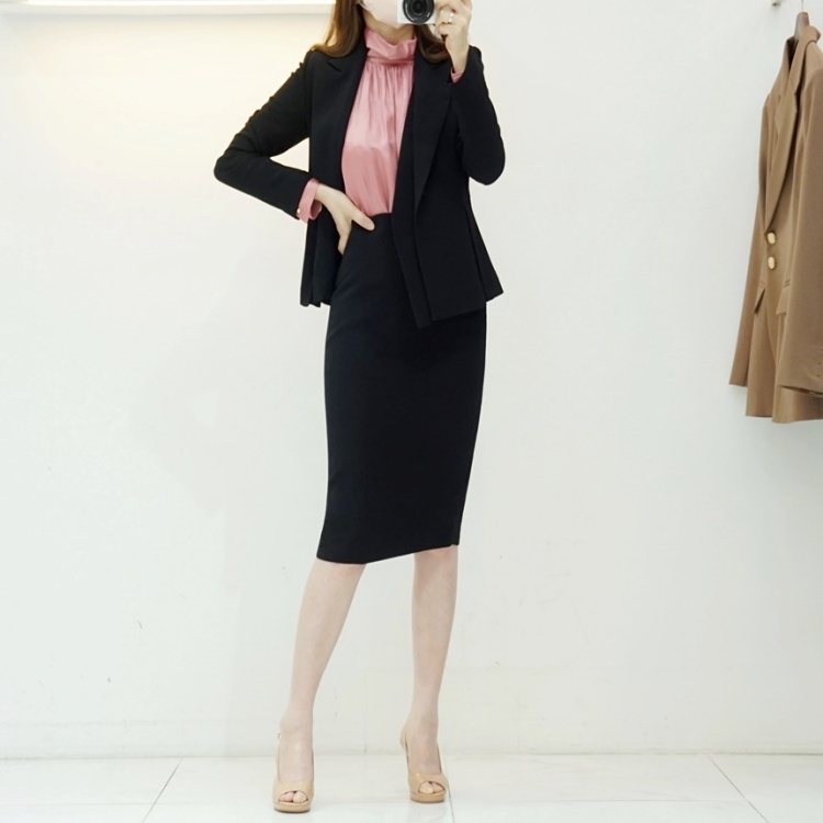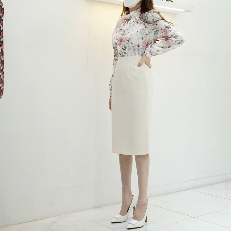 여자 베이직 정장 H라인 슬릿 미디스커트