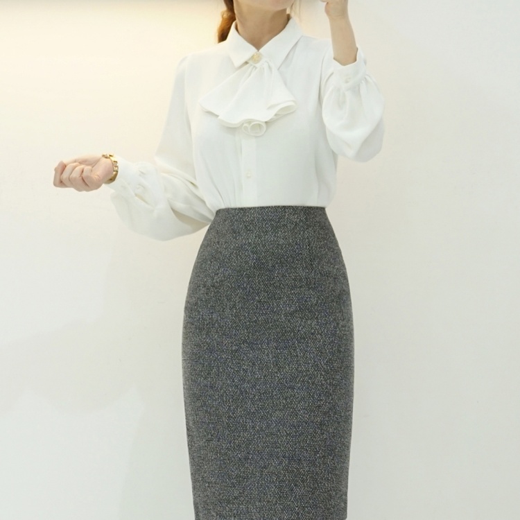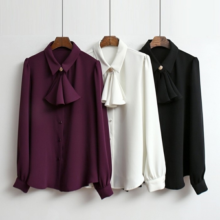 큐빅 버튼 러플 스카프 투웨이 쉬폰 블라우스