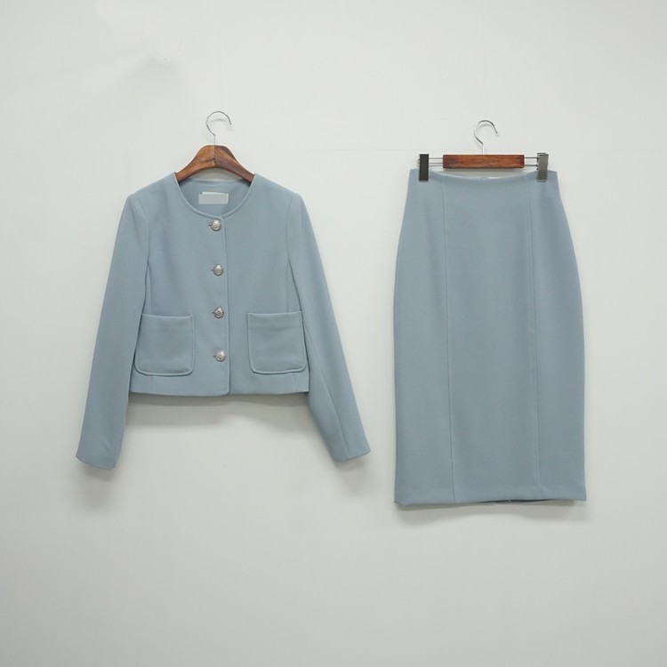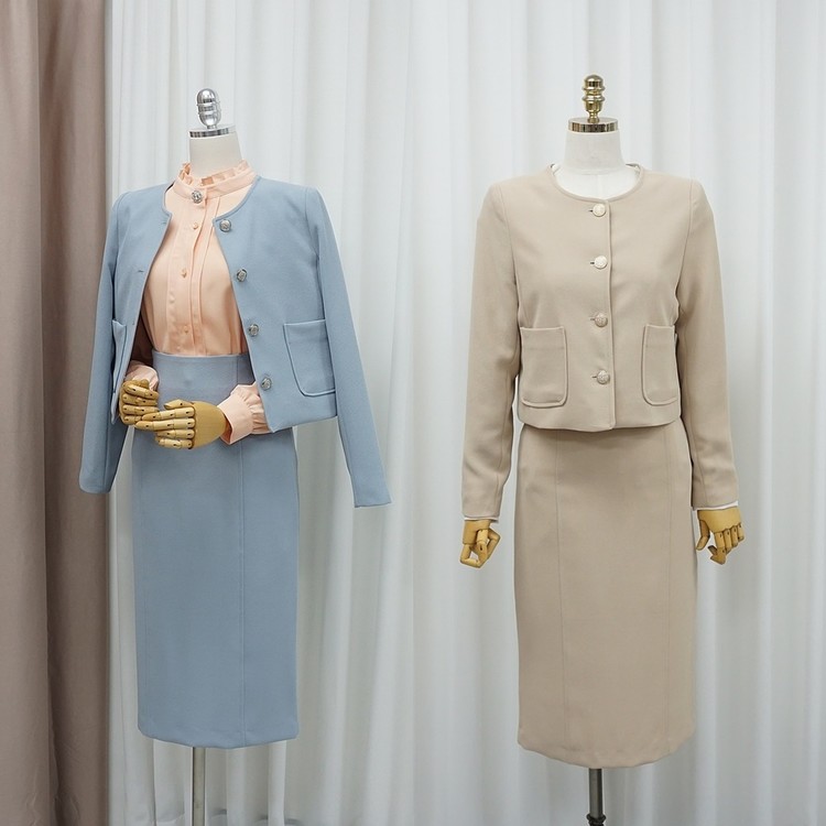 노카라 자켓 스커트 투피스 셋업 수트