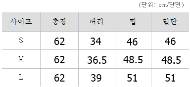 <사이즈> S, M, L