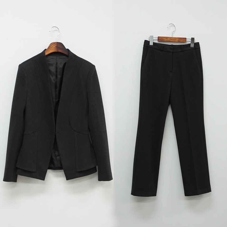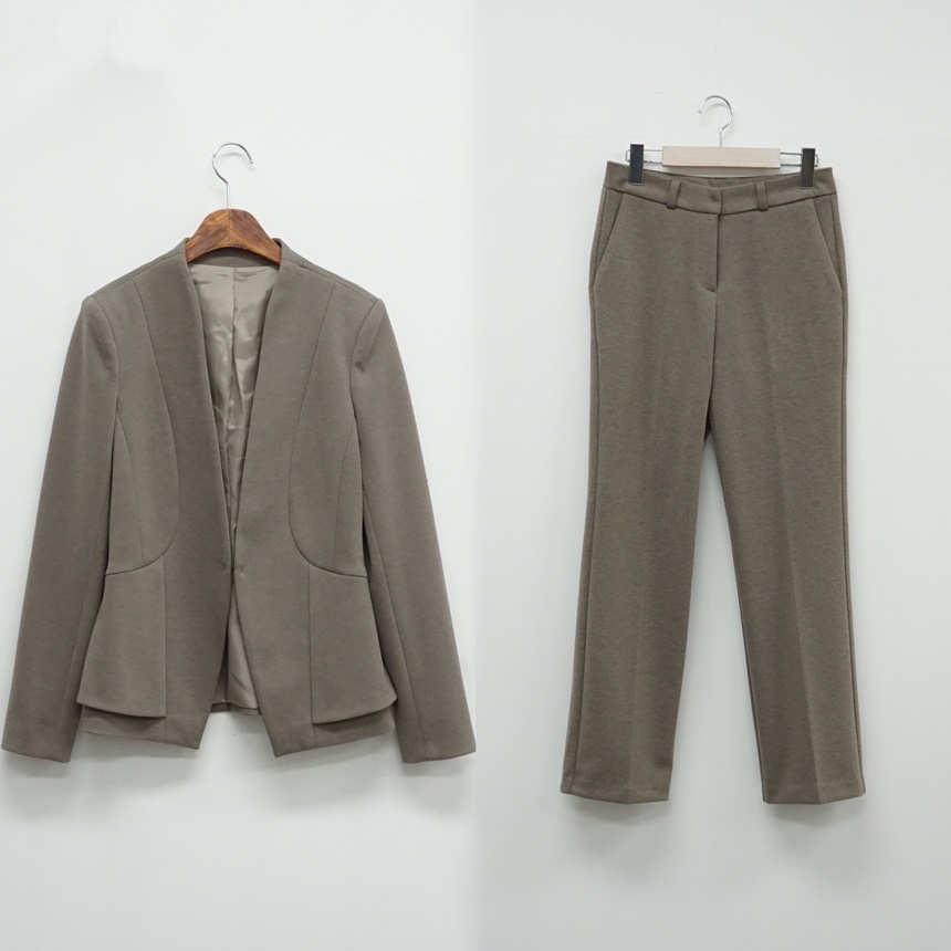 노카라 페플럼 자켓 스판 슬랙스 투피스
