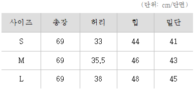 체형, 취향에 따라 사이즈가 다를 수 있습니다.