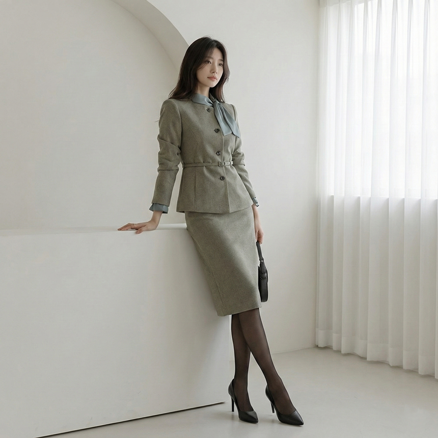 벨티드 자켓 스판 스커트 투피스 셋업수트