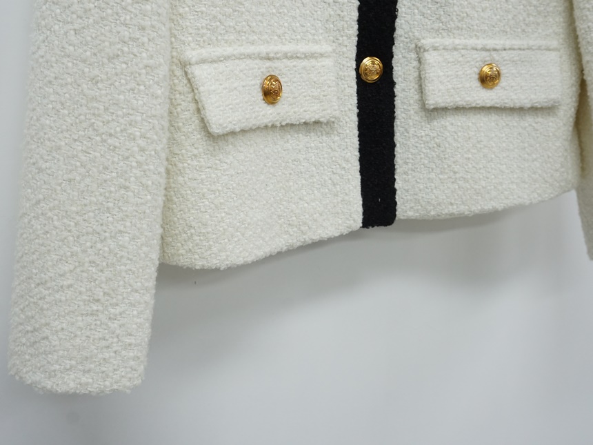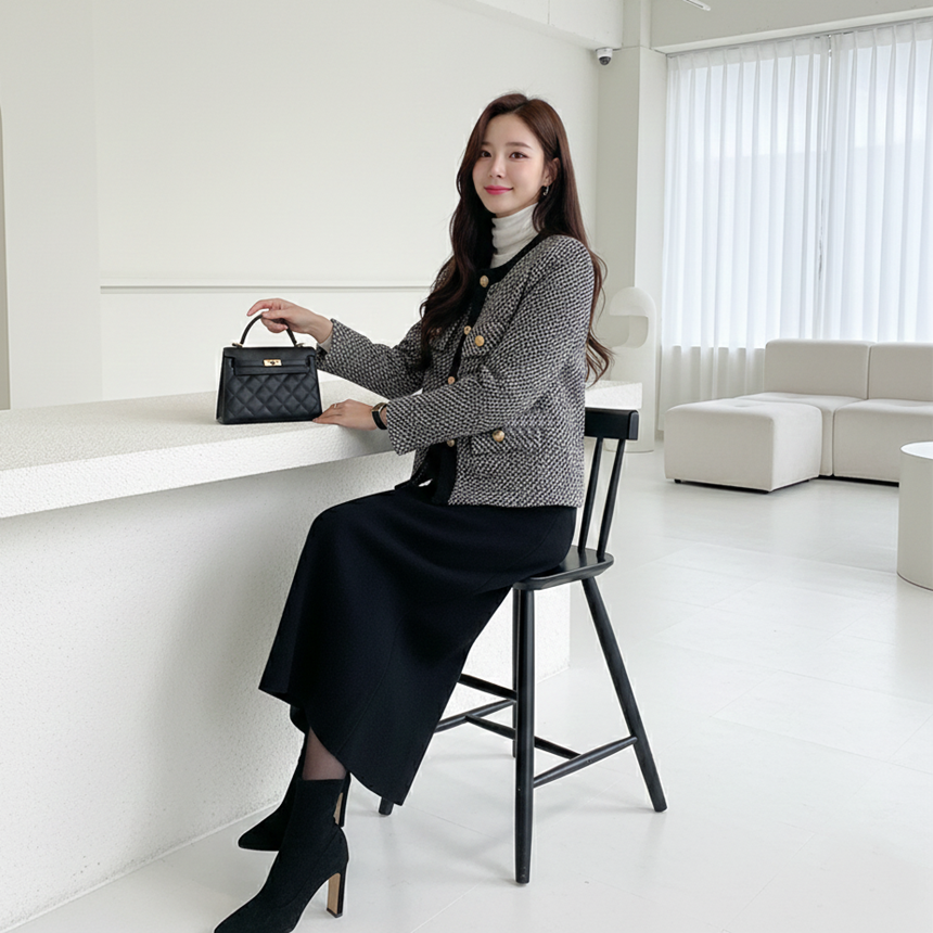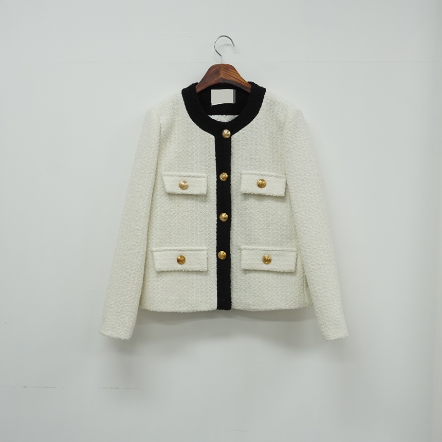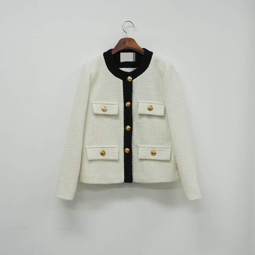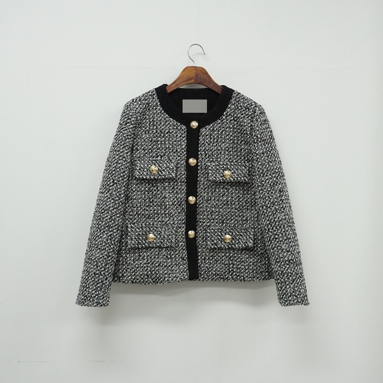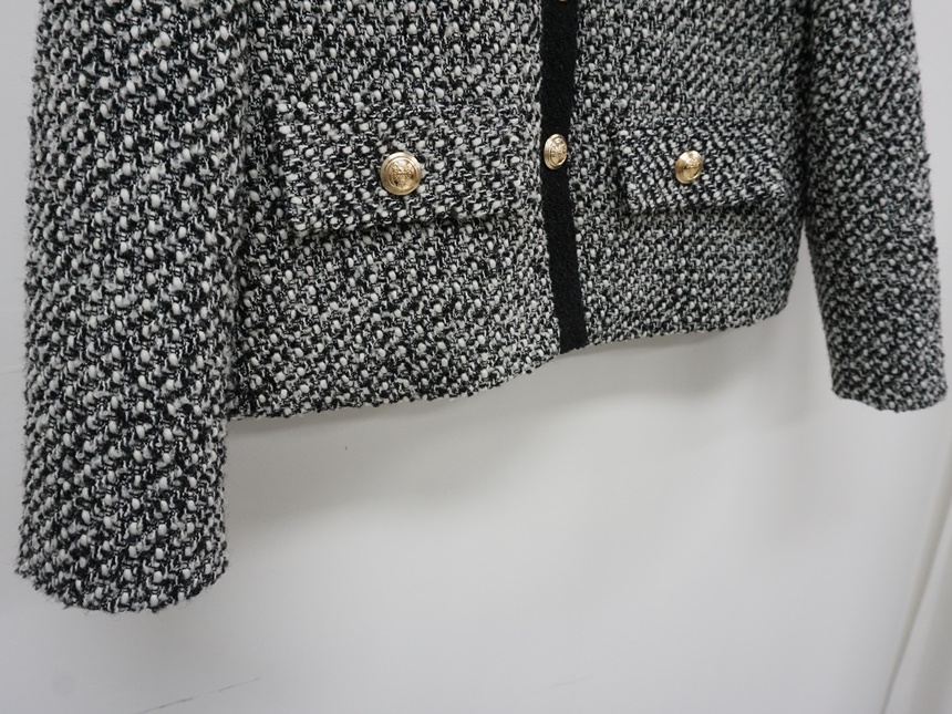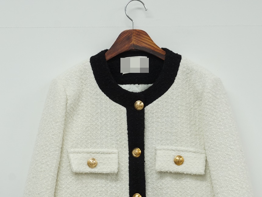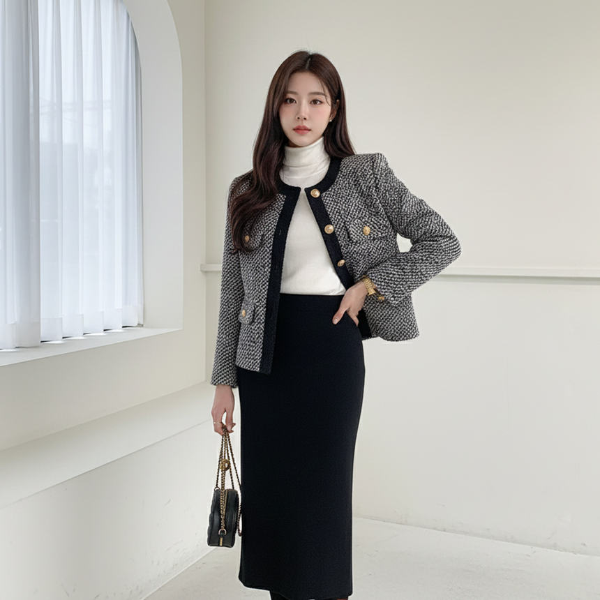 배색 콤비 라운드넥 울 트위드 자켓