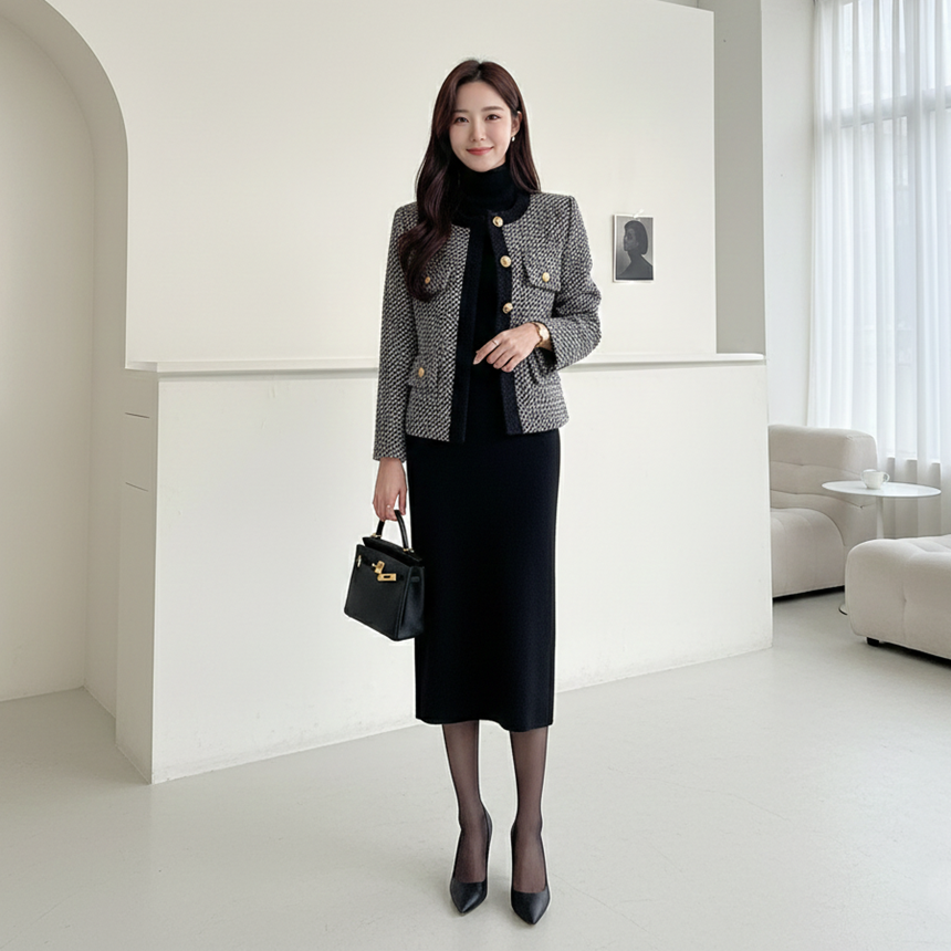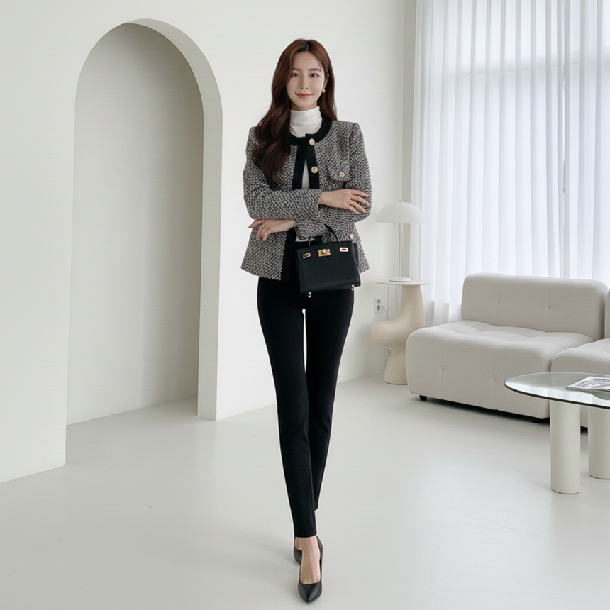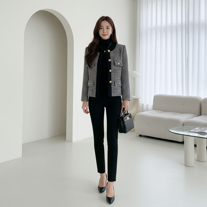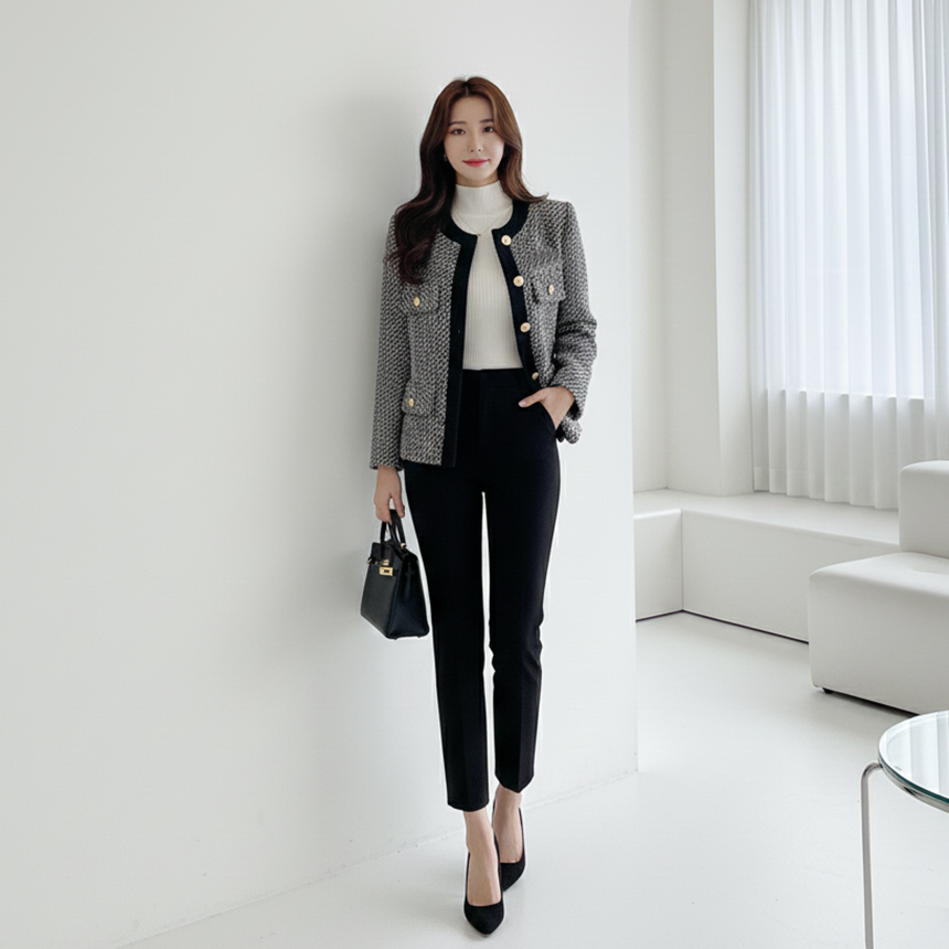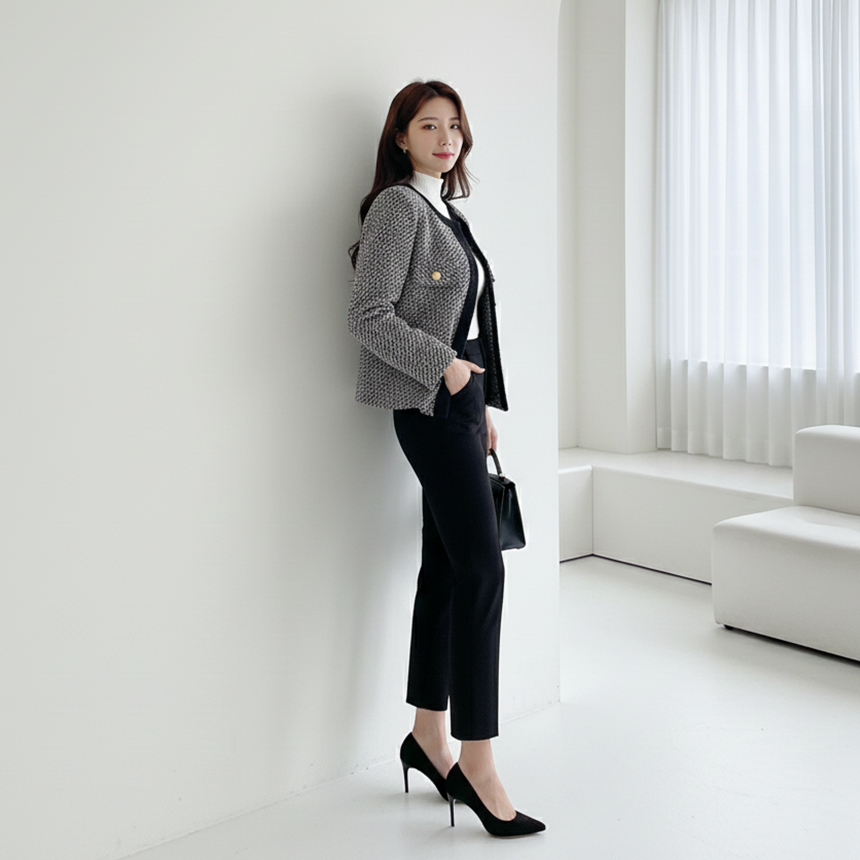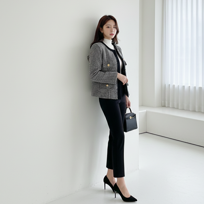 고급스러운 여성 노카라 정장 재킷 겨울 하객룩