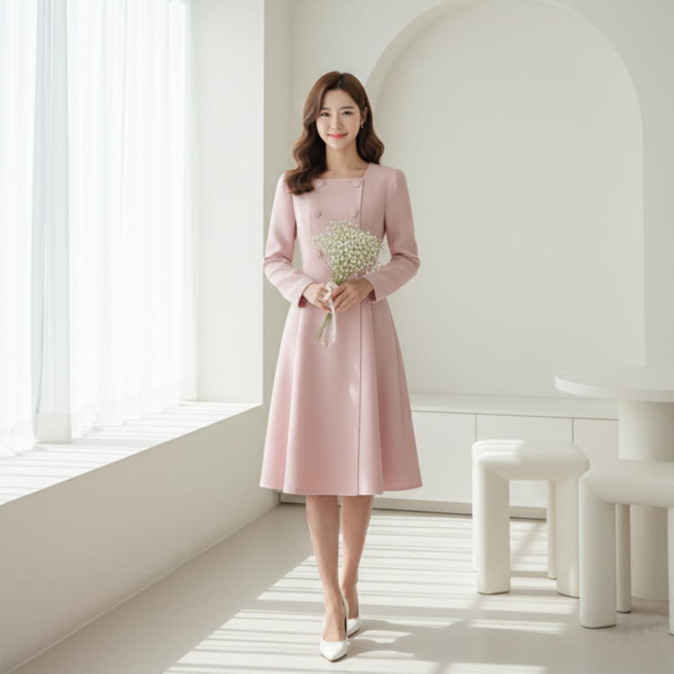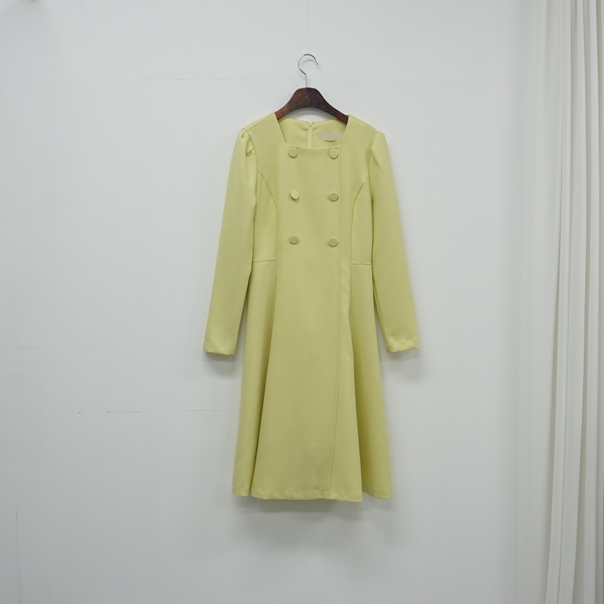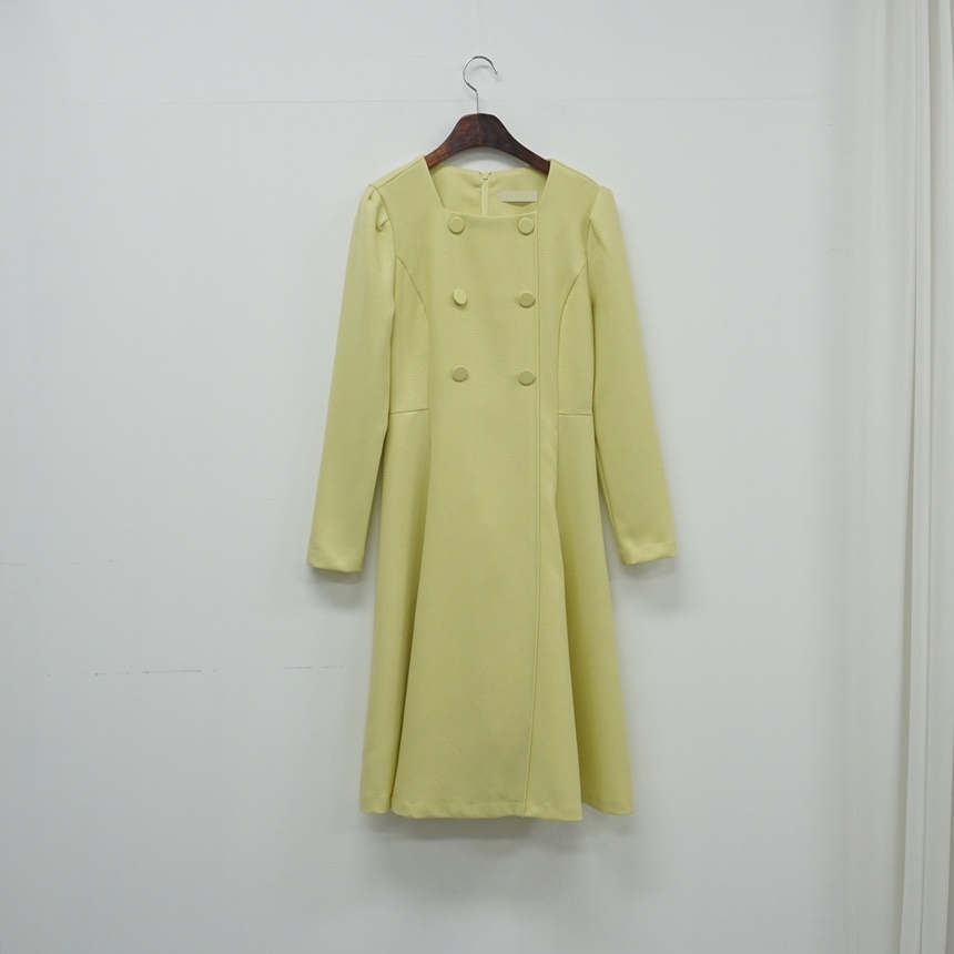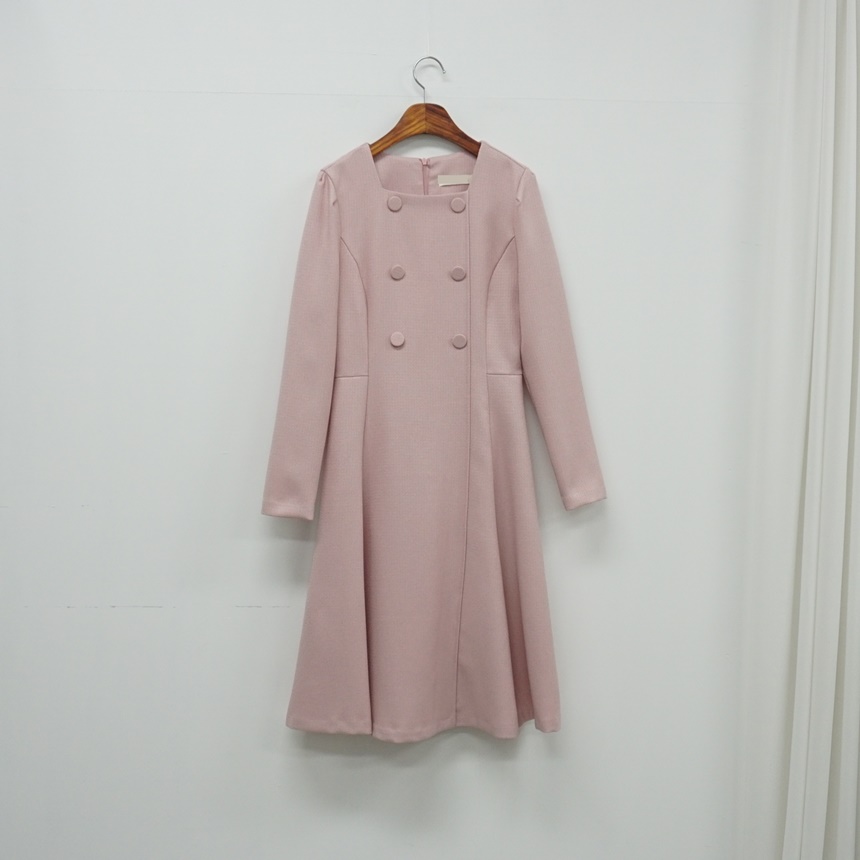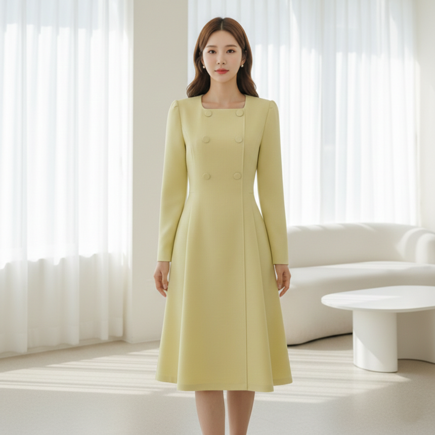 스퀘어넥 더블버튼 플레어 트위드 원피스